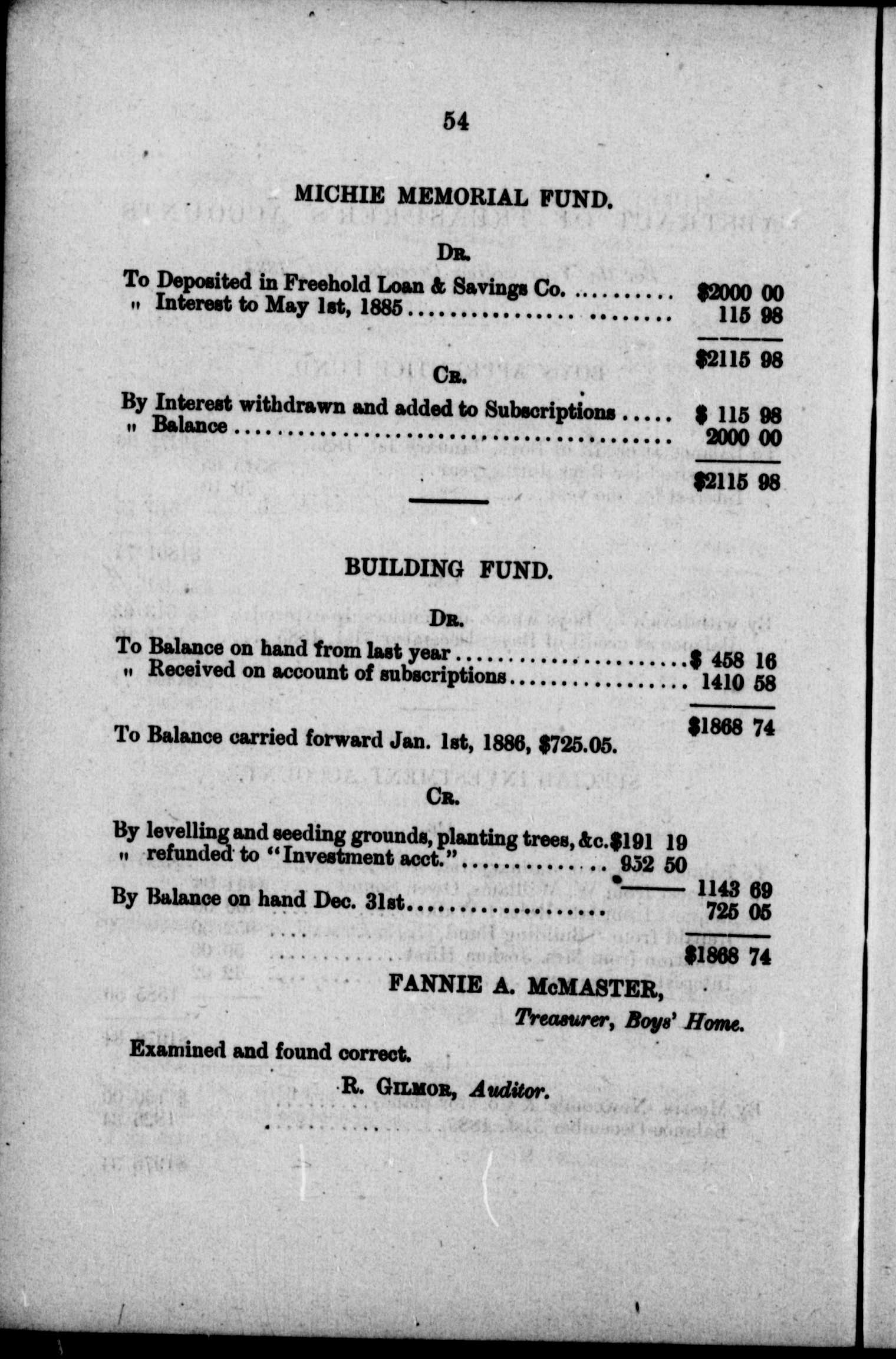 Toronto : Boys' Home for the Training and Maintenance of Destitute Boys not Convicted of Crime. Committee of Management, 1886; 59 images, 57 avec recherche en texte intégral