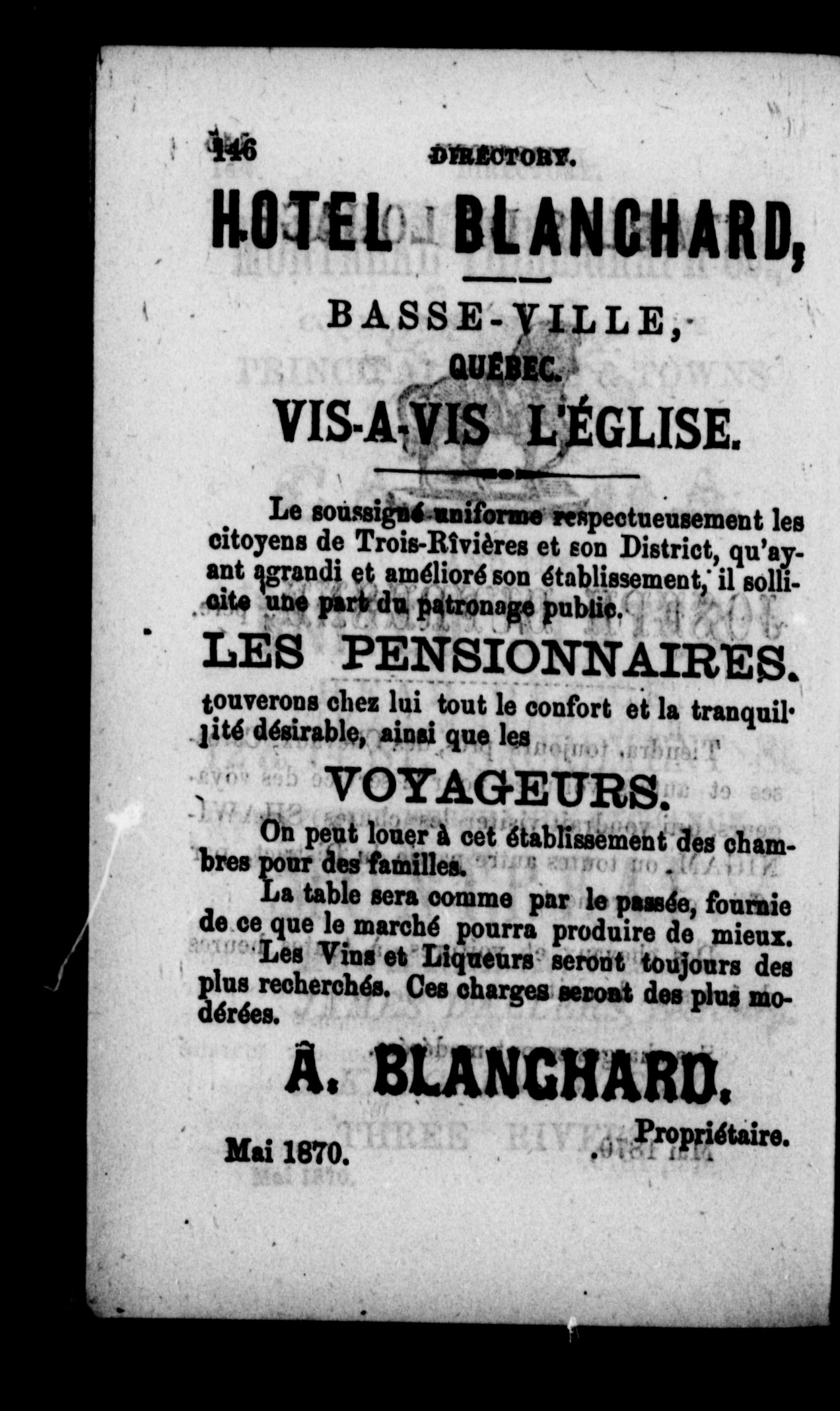 - Le Guide, ou, Directory de la cité et du district de Trois-Rivières pour 1870/71 = Directory of the city and district of Three Rivers ... : 1870-1871