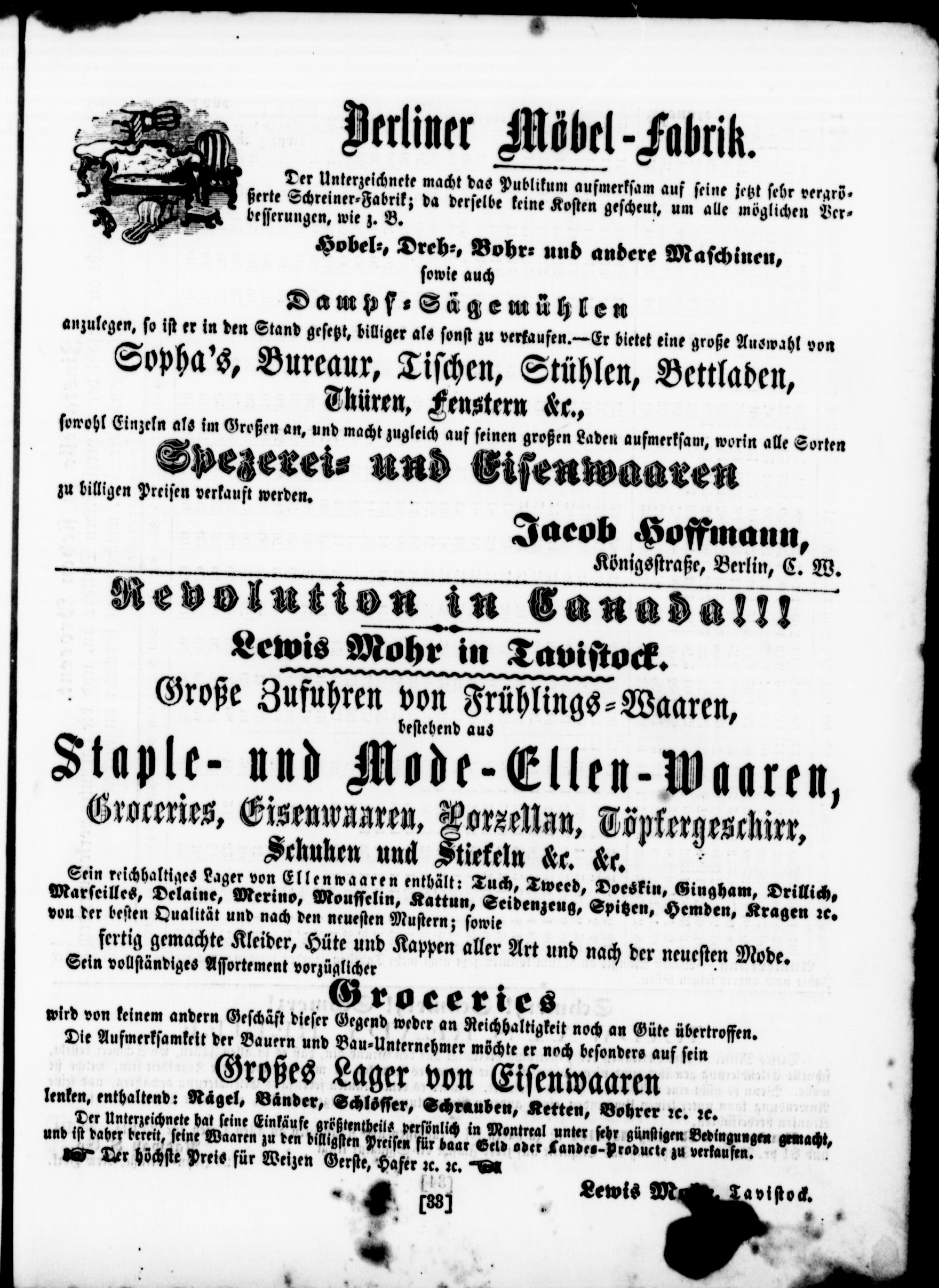 Berlin [Kitchener, Ont.] : Bödeser und Grübing, [1862?]; 46 images avec recherche en texte intégral