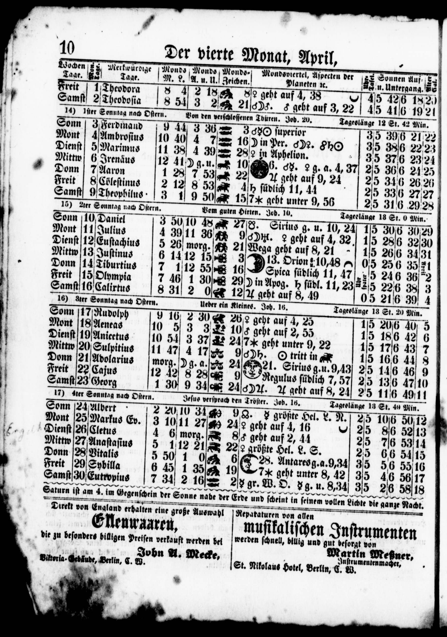 Canadischer Familien Calender auf das Jahr ... : Canadischer familien-calender auf das Jahr unsers herrn Jesu Christi 1864 : 1864