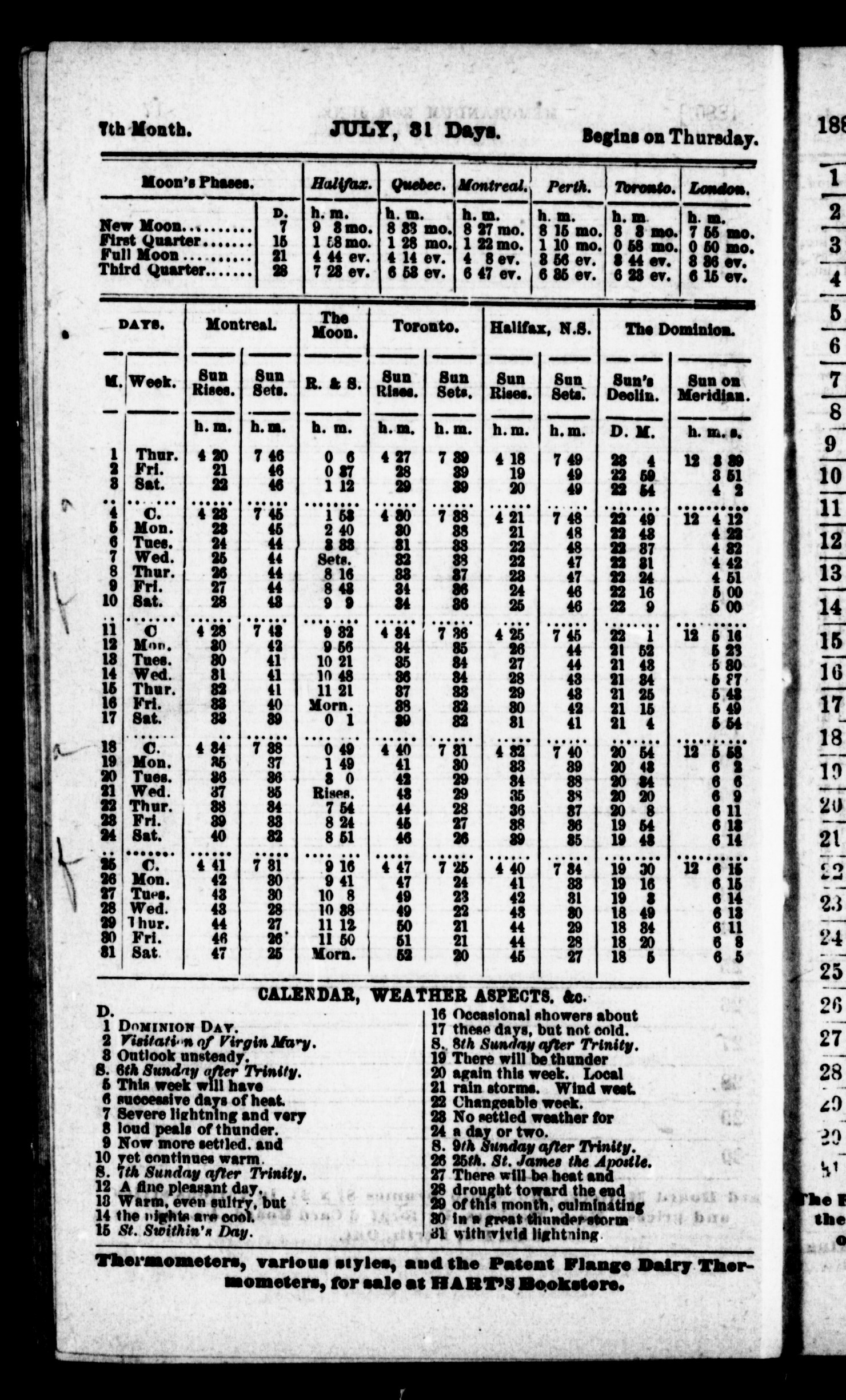 - Hart's Canadian almanac and repository of useful information and division court directory for the counties of Lanark and Renfrew for the year of our Lord 1880 : 24th (1880)