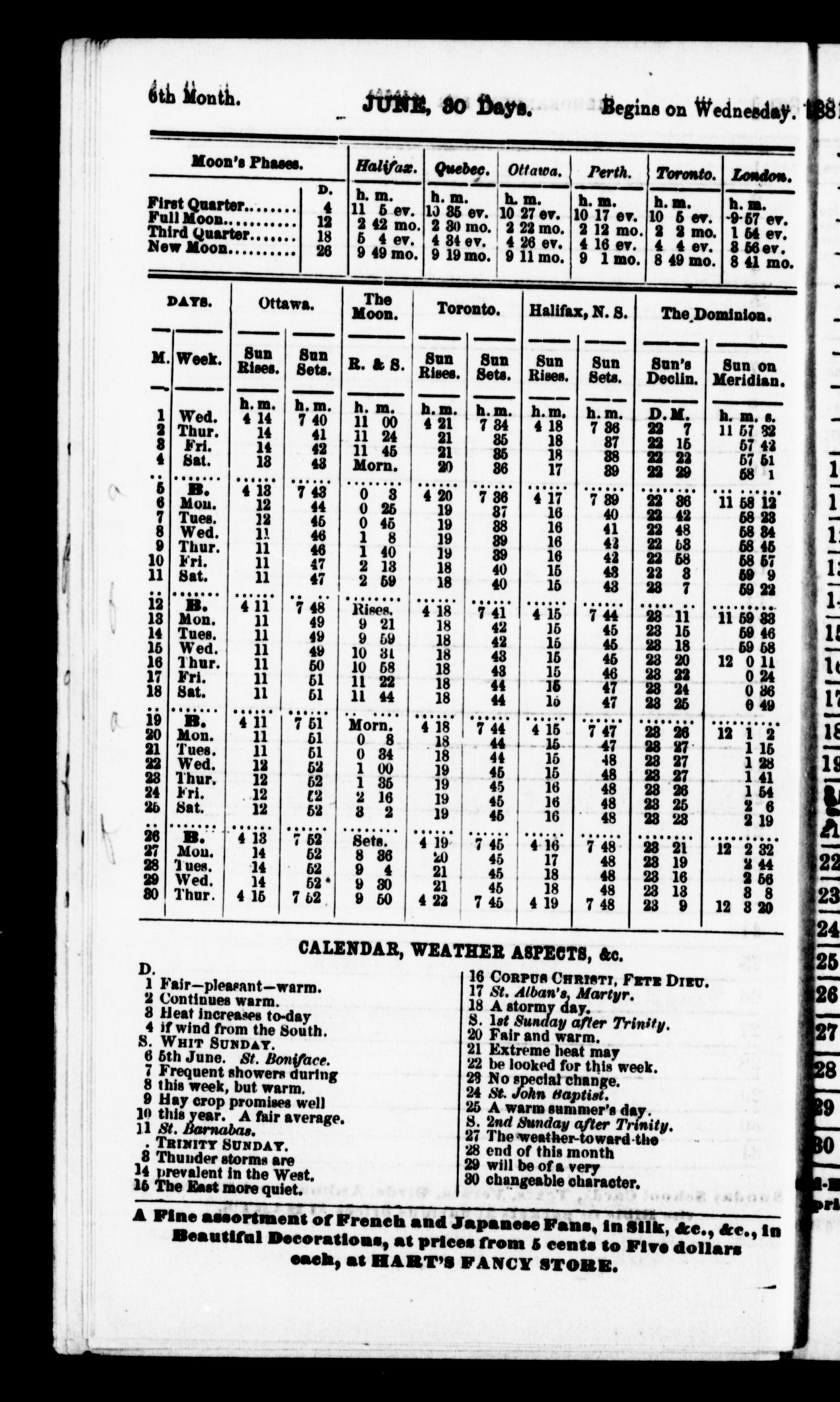 Hart's Canadian almanac and repository of useful information and division court directory for the counties of Lanark and Renfrew for the year of our Lord 1881 : 25th (1881)