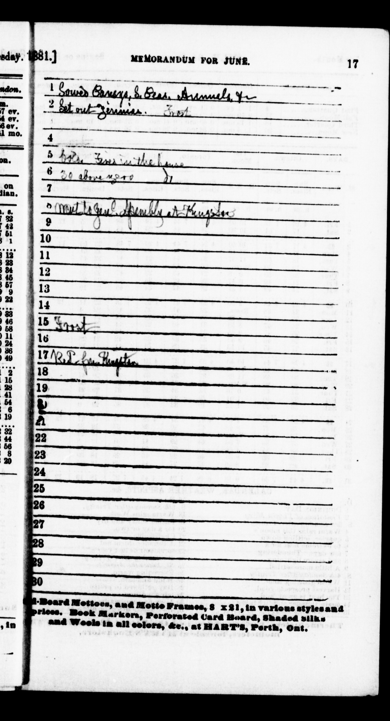 Hart's Canadian almanac and repository of useful information and division court directory for the counties of Lanark and Renfrew for the year of our Lord 1881 : 25th (1881)