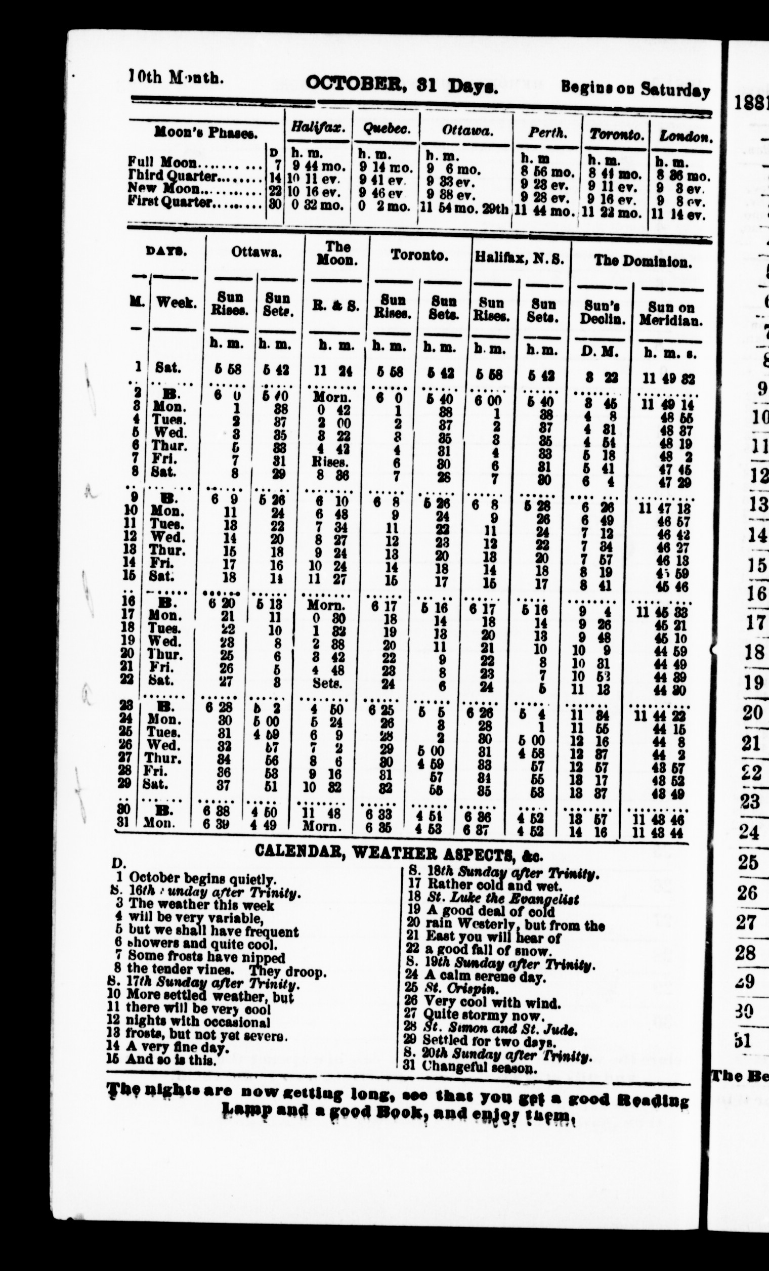 - Hart's Canadian almanac and repository of useful information and division court directory for the counties of Lanark and Renfrew for the year of our Lord 1881 : 25th (1881)