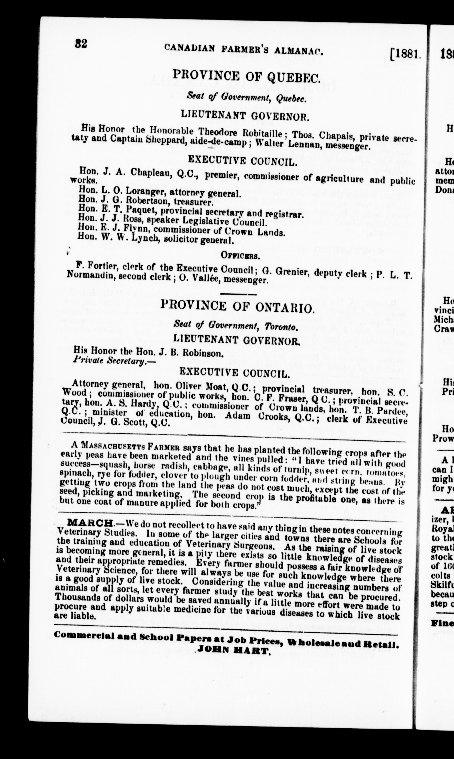 - Hart's Canadian almanac and repository of useful information and division court directory for the counties of Lanark and Renfrew for the year of our Lord 1881 : 25th (1881)