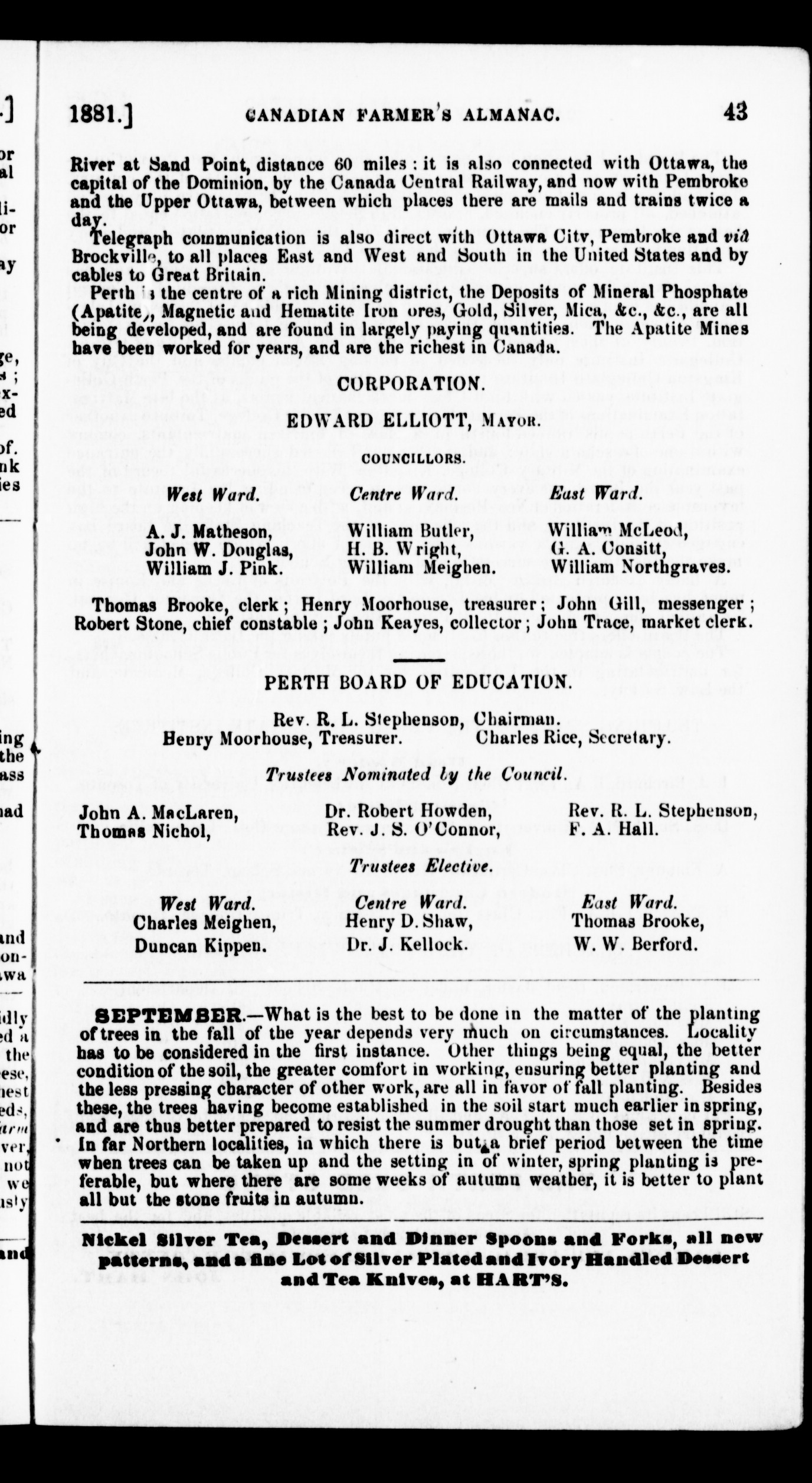 Perth, Ontario : Published by John Hart, [1880?]; 48 images avec recherche en texte intégral