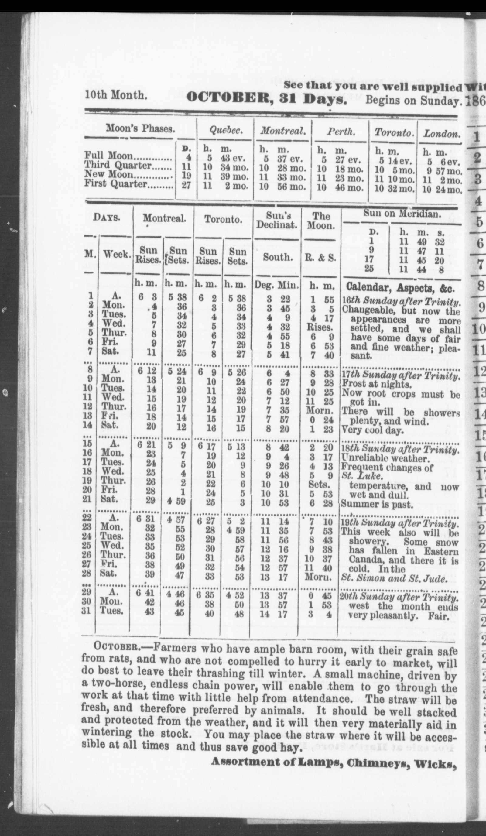 Hart's Canadian almanac and repository of useful information for the United Counties of Lanark and Renfrew for the year ... : Halpenny's Canadian almanac and repository of useful information for the united counties of Lanark and Renfrew for the year 1865 : 9th (1865)