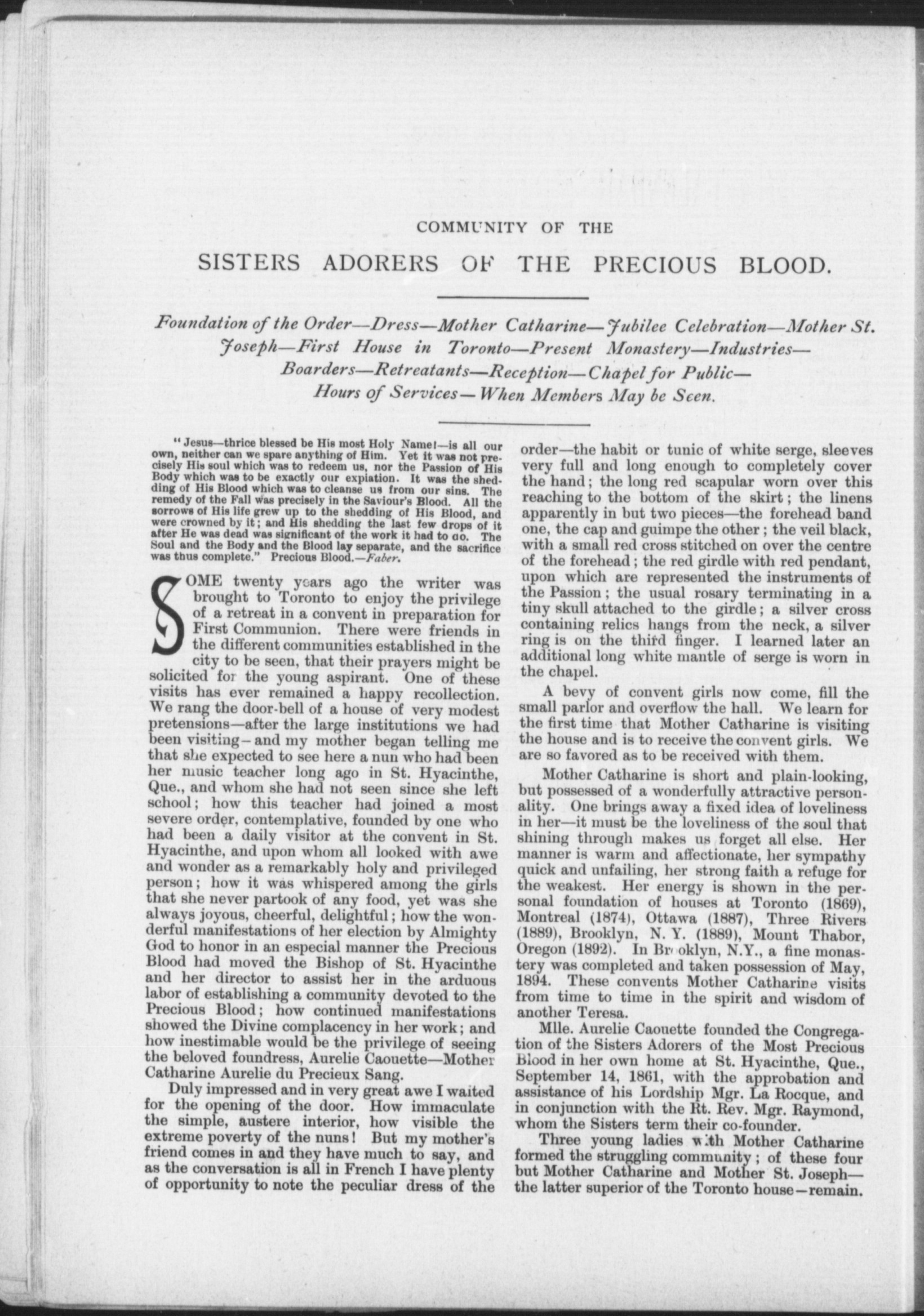 Toronto : Published by the Sisters Adorers of the Precious Blood, 1895