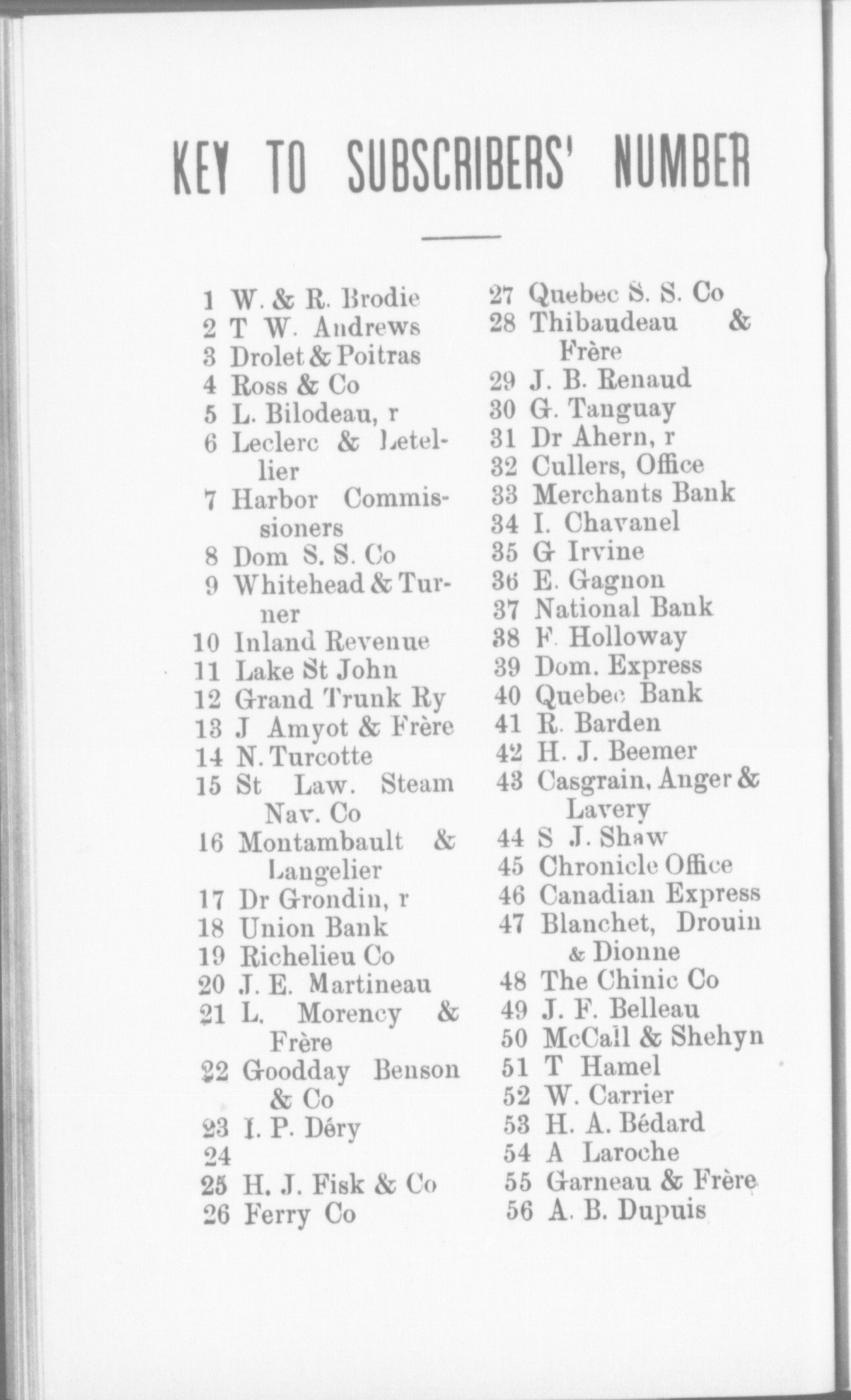 - Subscribers' directory Quebec, Levis & Etchemin / Bell Telephone Co. of Canada : 1890