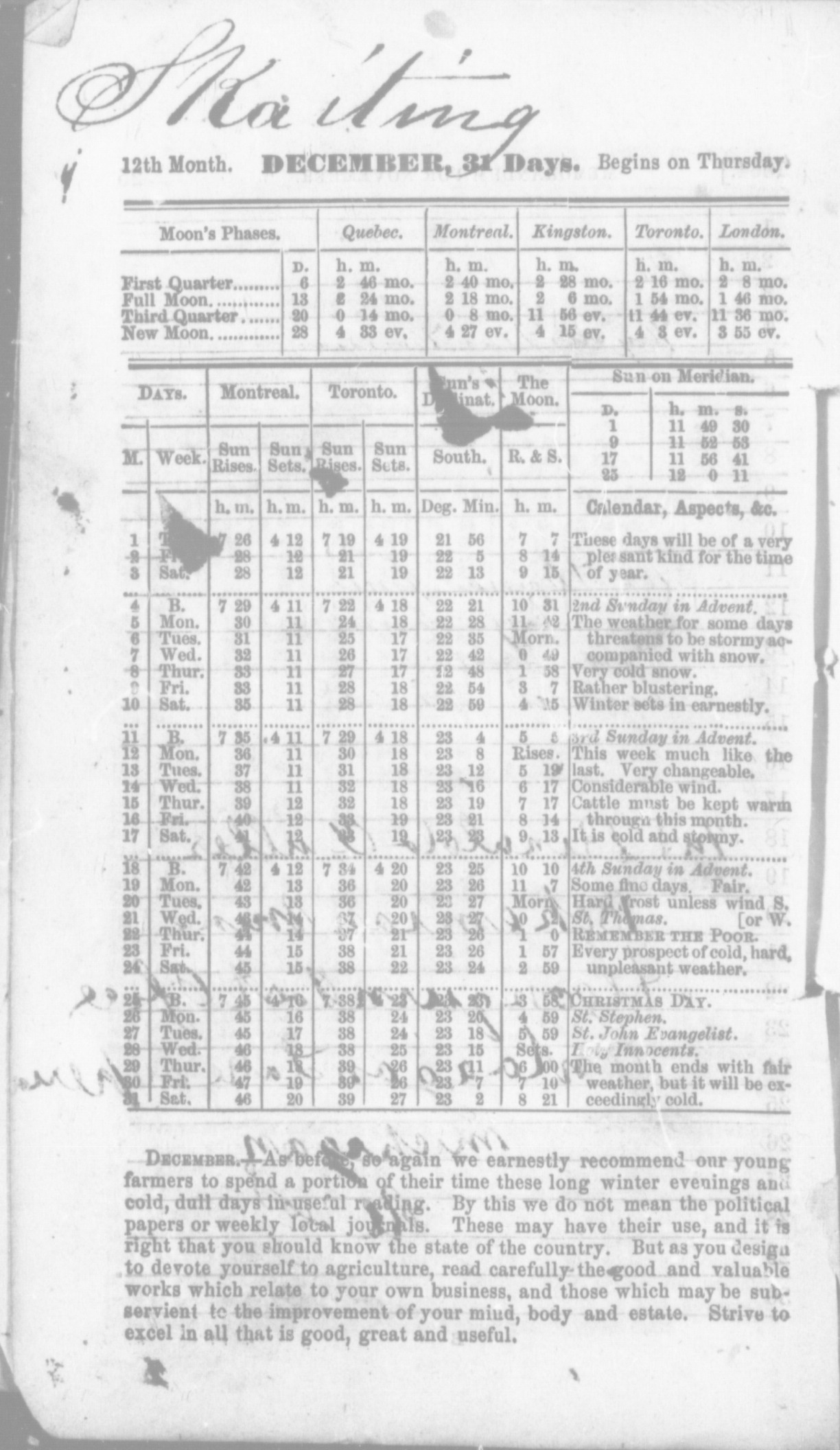 Miller's Canadian farmers' almanac for the year of our Lord ... : Miller's Canadian farmers' almanac for the year of our Lord 1864 : 1864