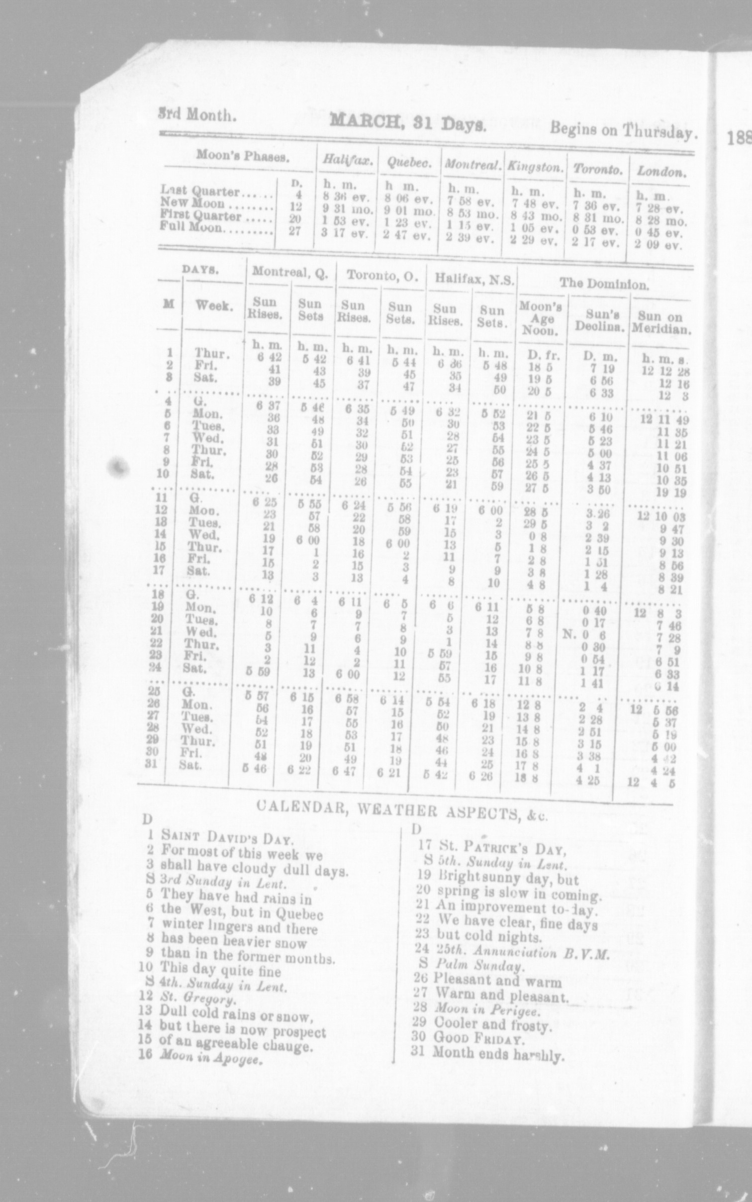 - Miller's Canadian farmer's almanac for the year of our Lord 1888 : 1888