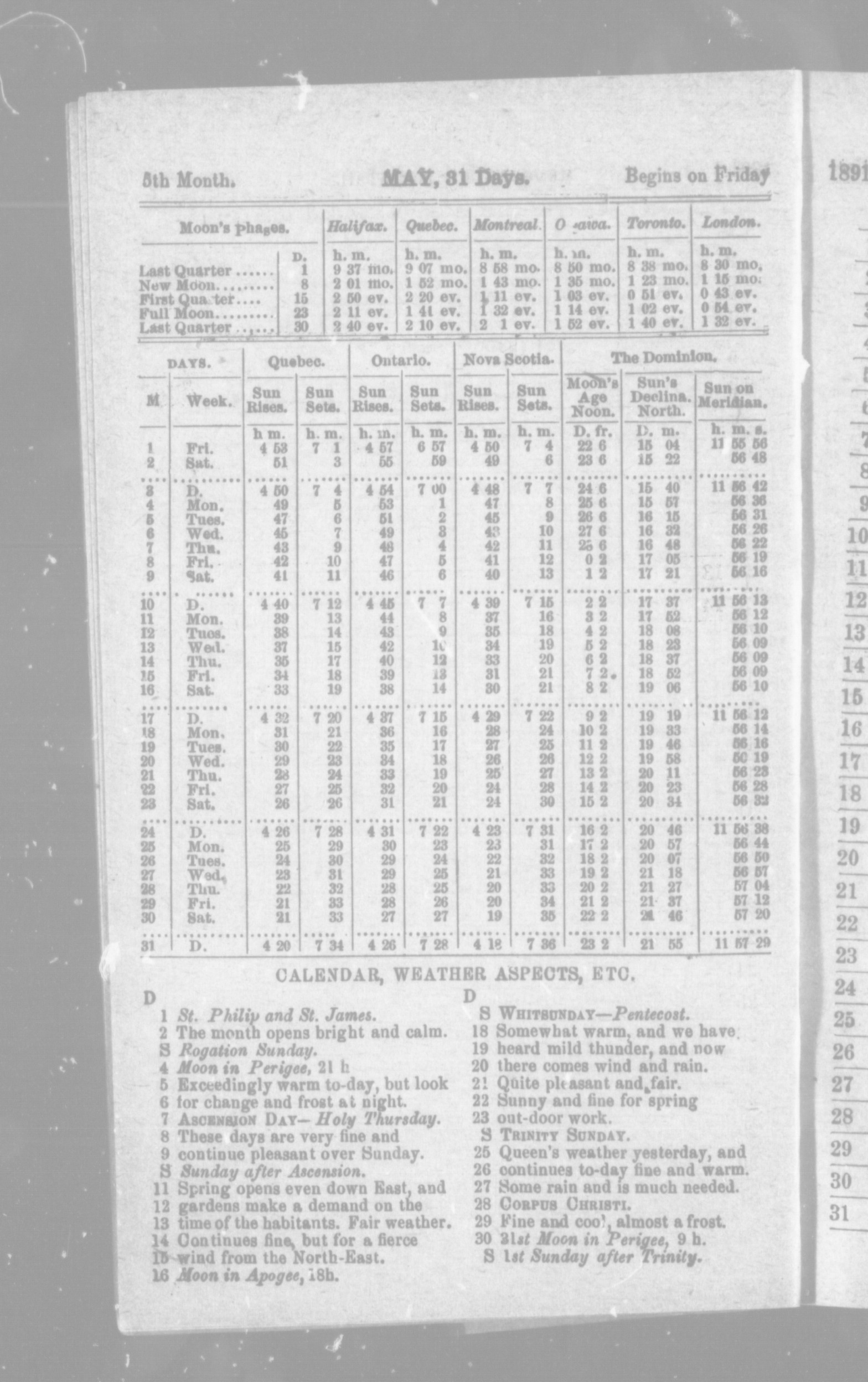 Miller's Canadian farmers' almanac for the year of our Lord ... : Miller's Canadian farmer's almanac for the year of our Lord 1891 : 1891