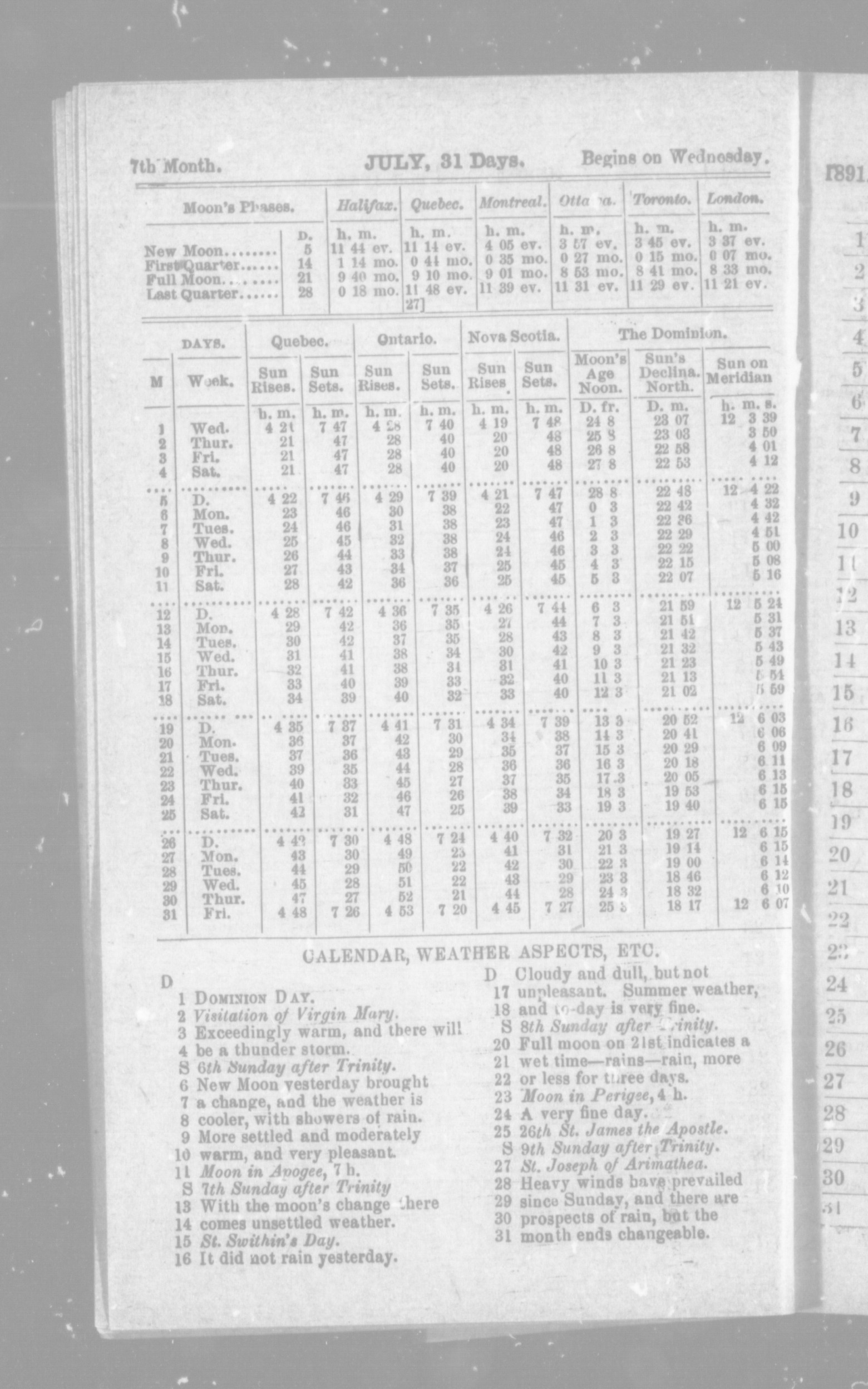 - Miller's Canadian farmer's almanac for the year of our Lord 1891 : 1891