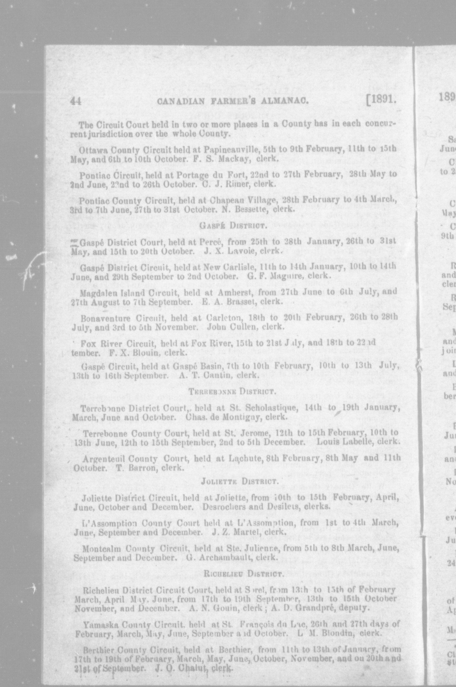 Miller's Canadian farmer's almanac for the year of our Lord 1891 : 1891