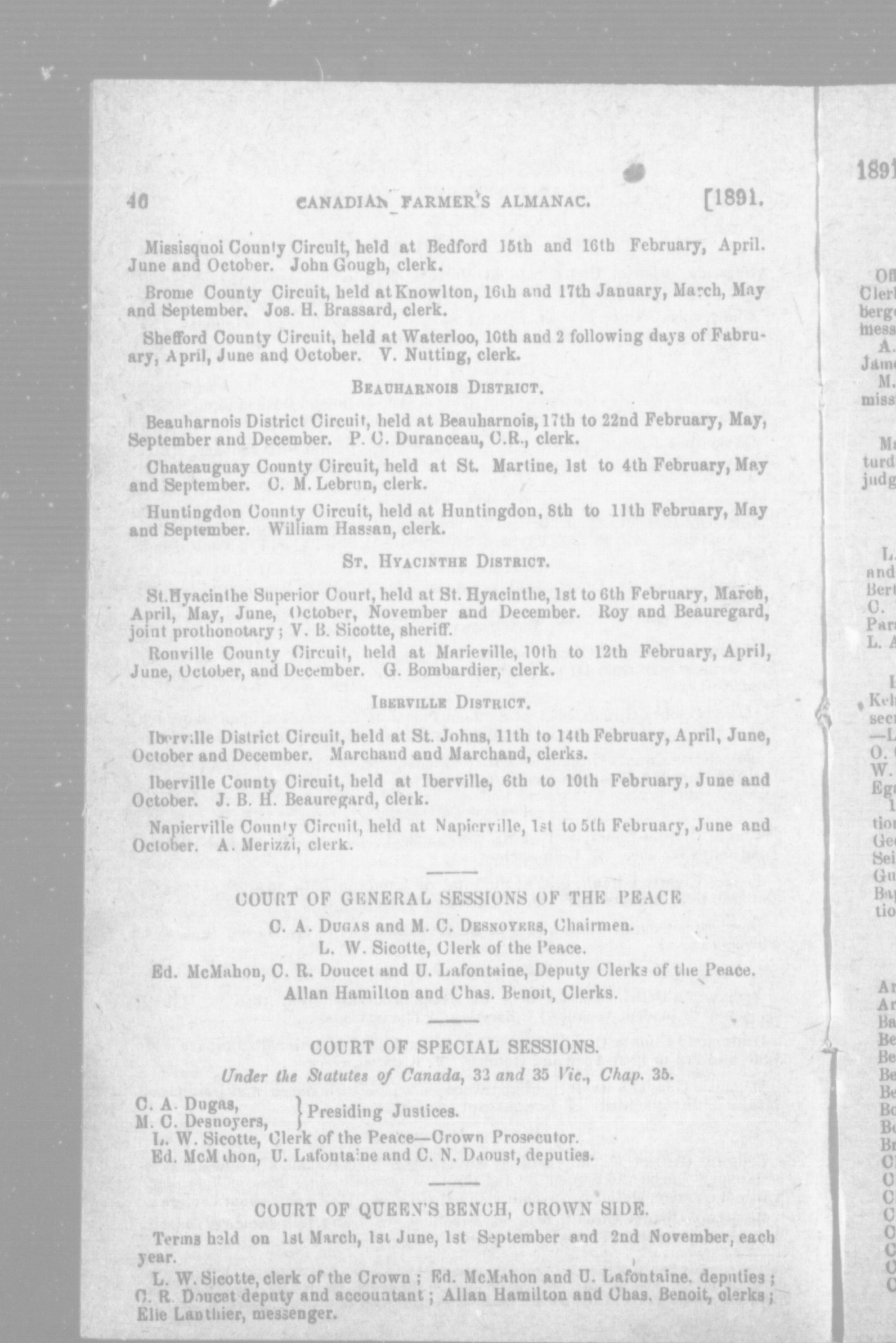 Miller's Canadian farmers' almanac for the year of our Lord ... : Miller's Canadian farmer's almanac for the year of our Lord 1891 : 1891