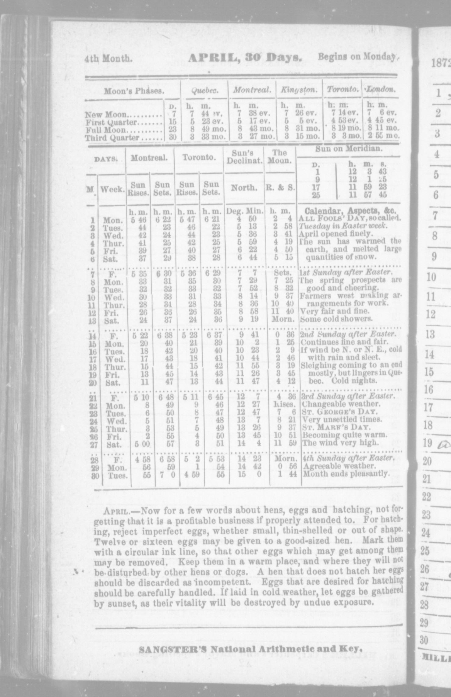 Miller's Canadian farmers' almanac for the year of our Lord 1872 : 1872
