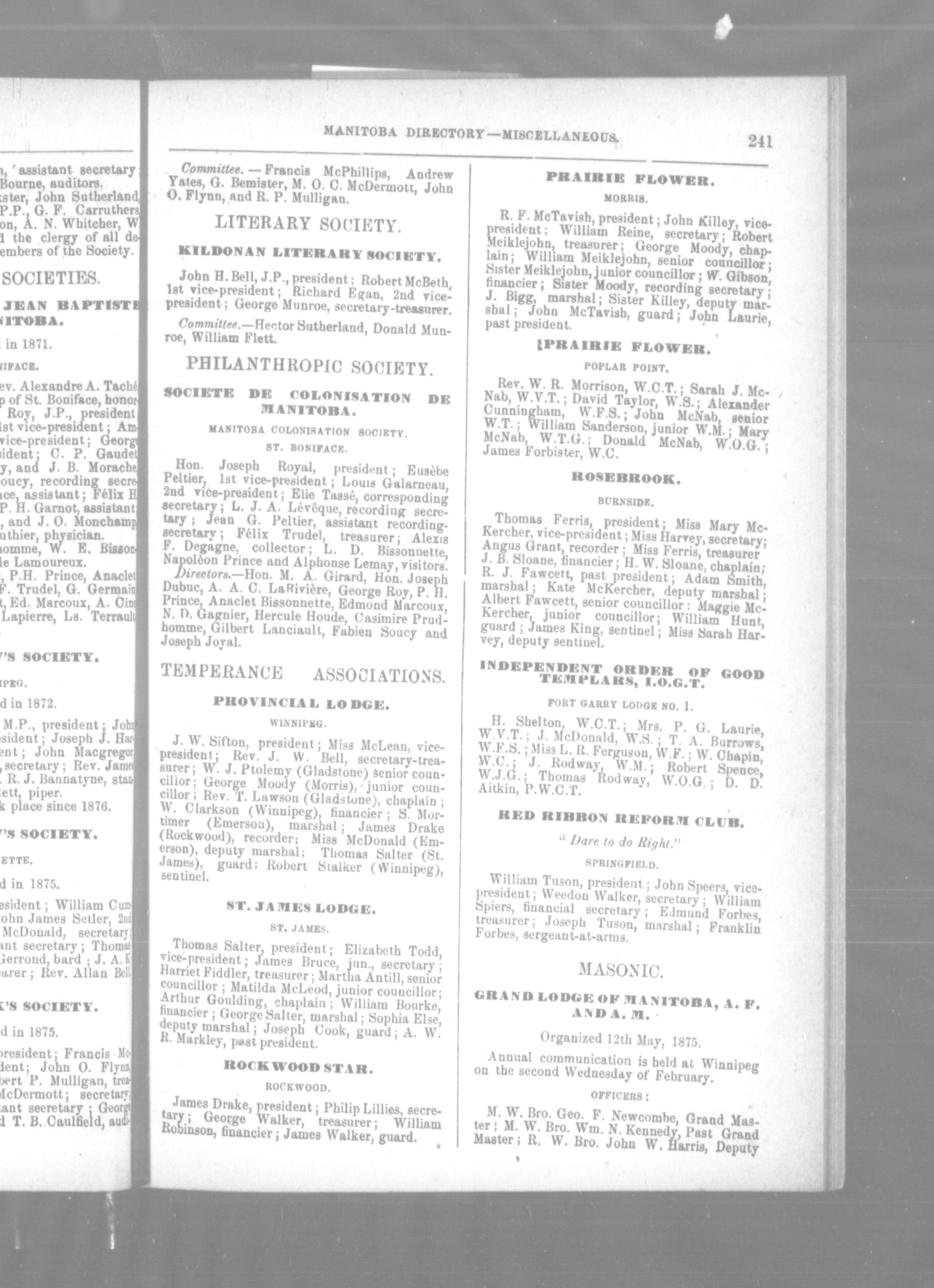 Winnipeg, Manitoba : Published by the Manitoba Directory Publishing Company, [1878]; 298 images avec recherche en texte intégral