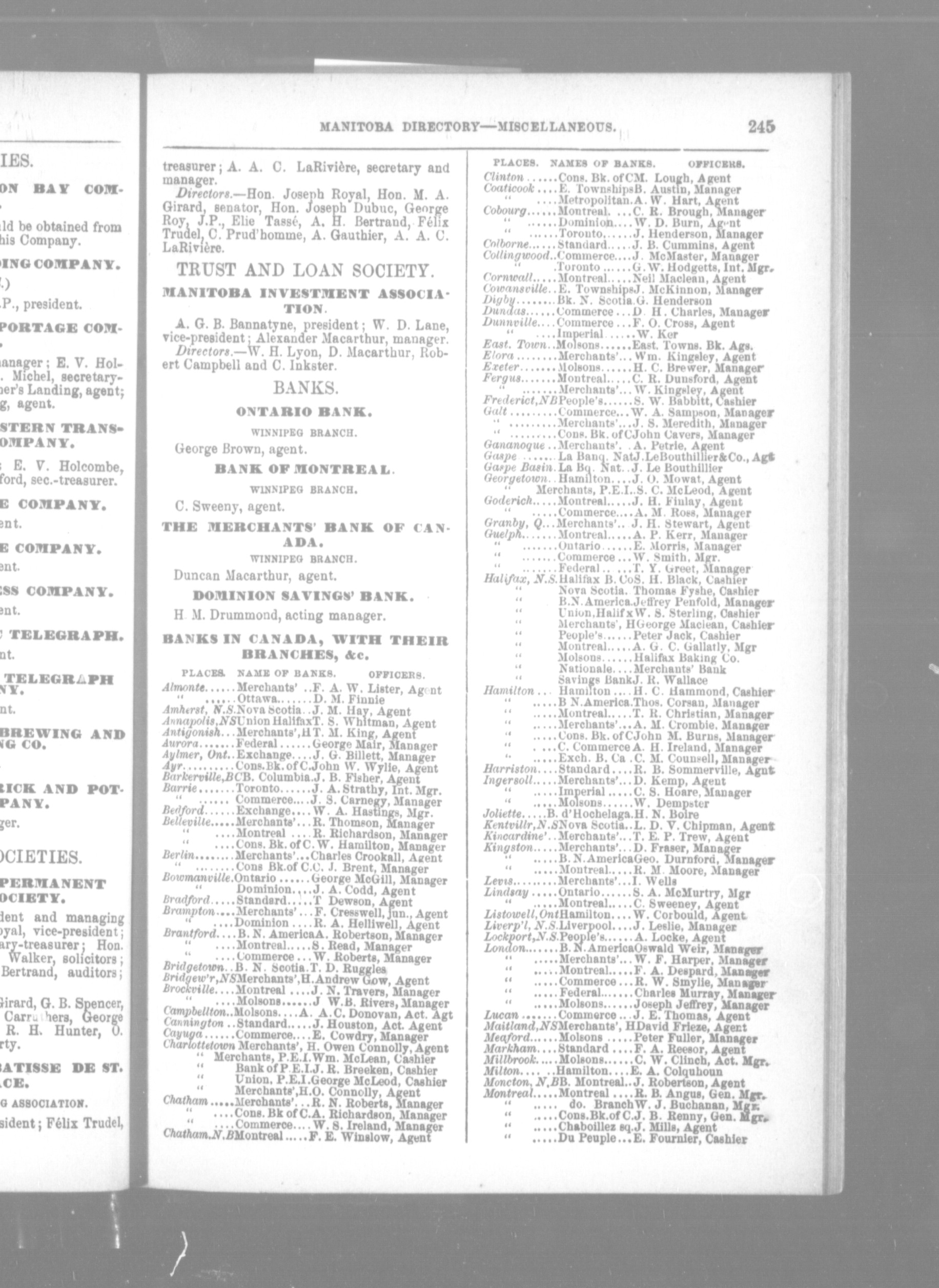 Winnipeg, Manitoba : Published by the Manitoba Directory Publishing Company, [1878]; 298 images avec recherche en texte intégral