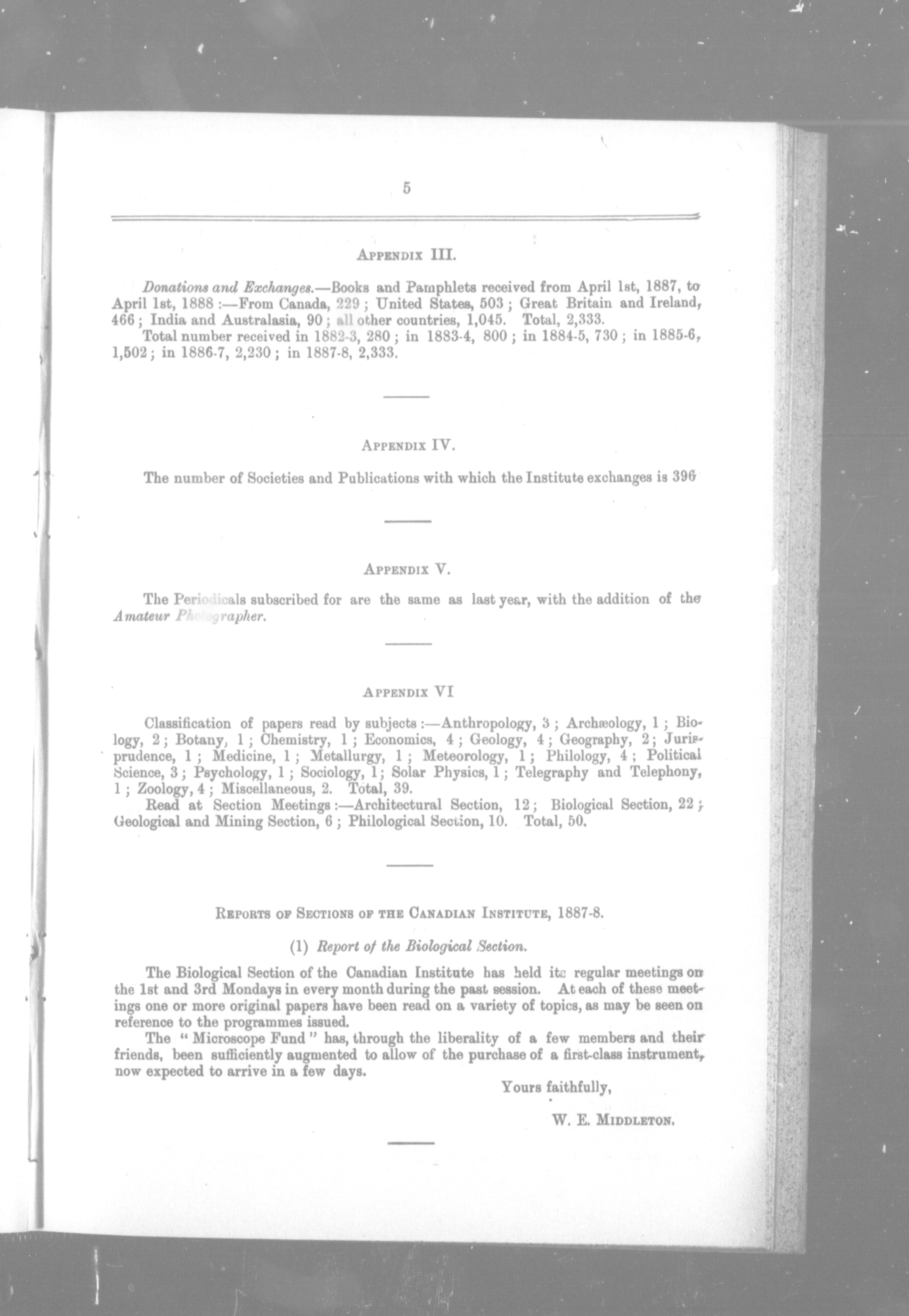 Annual report of the Canadian Institute, session 1887-8 : being part of Appendix L. to the Report of the Minister of Education, Ontario, 1888 : 1887-8