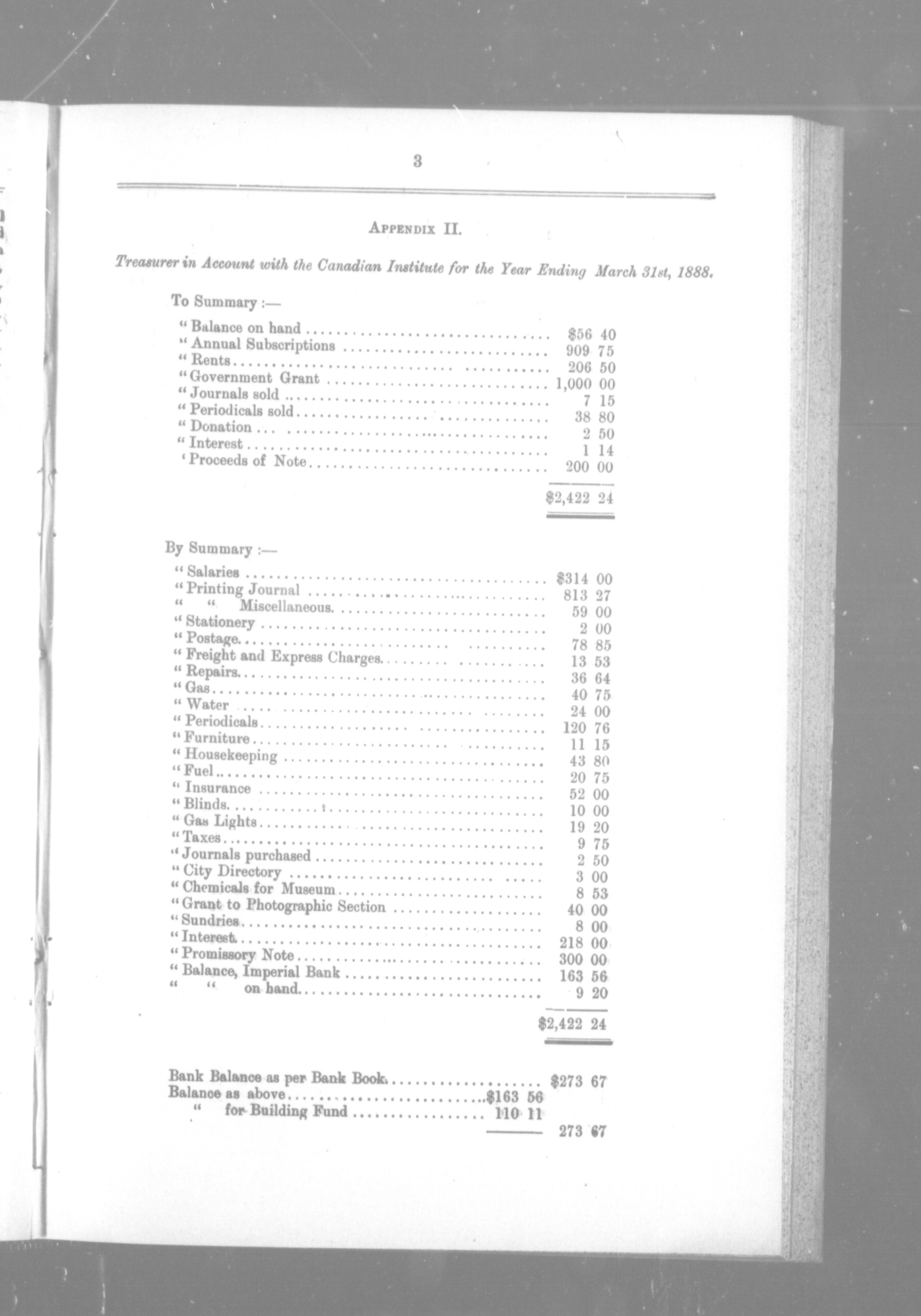 Annual report of the Canadian Institute. : Annual report of the Canadian Institute, session 1887-8 : being part of Appendix L. to the Report of the Minister of Education, Ontario, 1888 : 1887-8