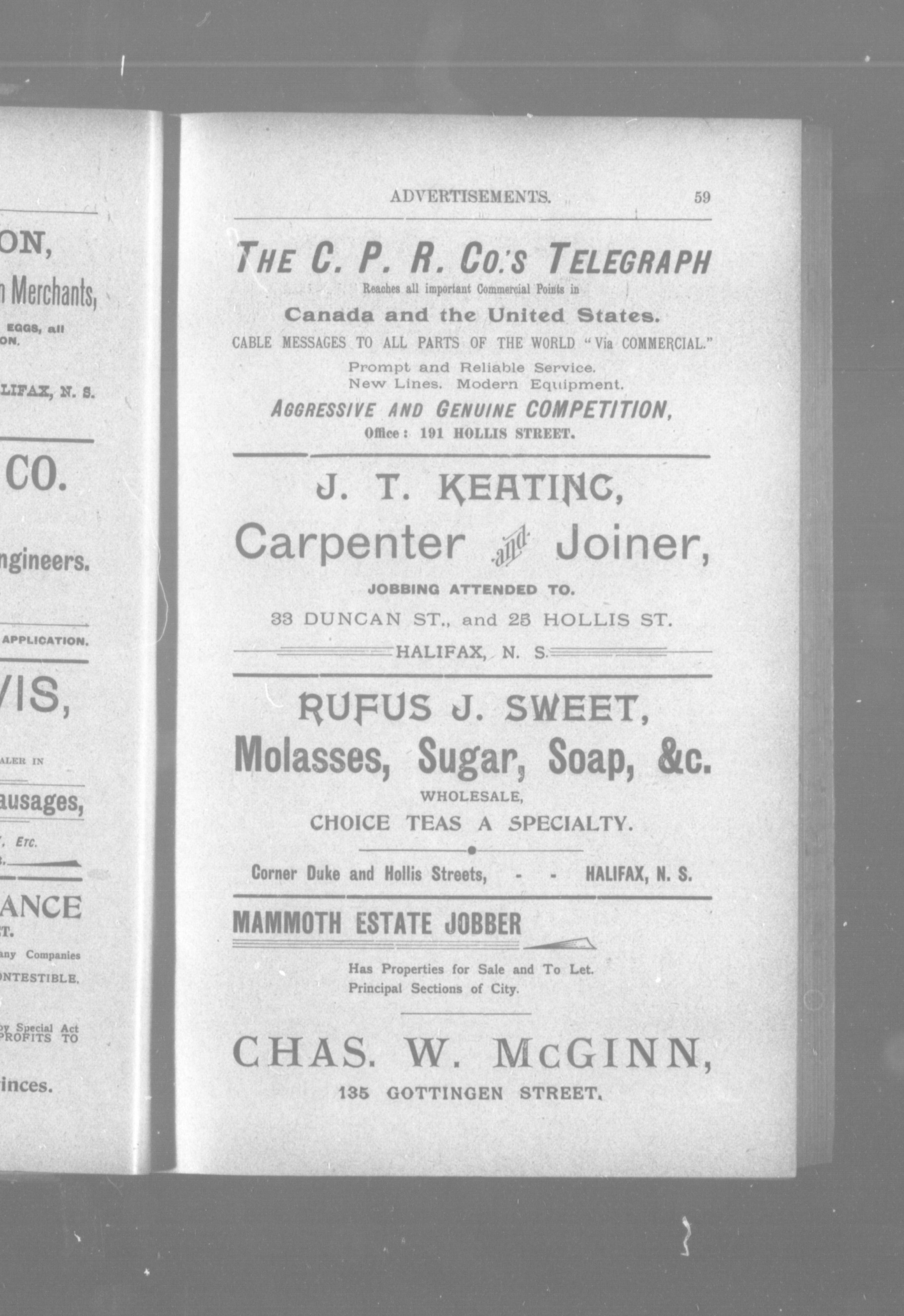Aide Halifax, N.S. : Published by the McAlpine Directory Company, [1896?]; 739 images avec recherche en texte intégral
