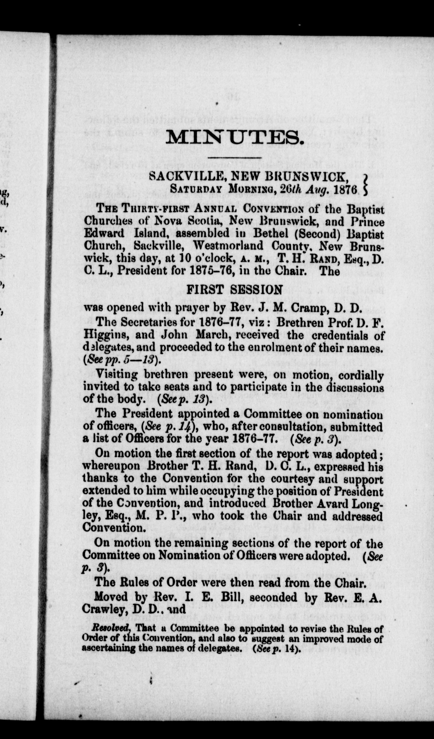 [St. John, N.B.] : [Baptist Convention of Nova Scotia, New Brunswick and Prince Edward Island], 1876