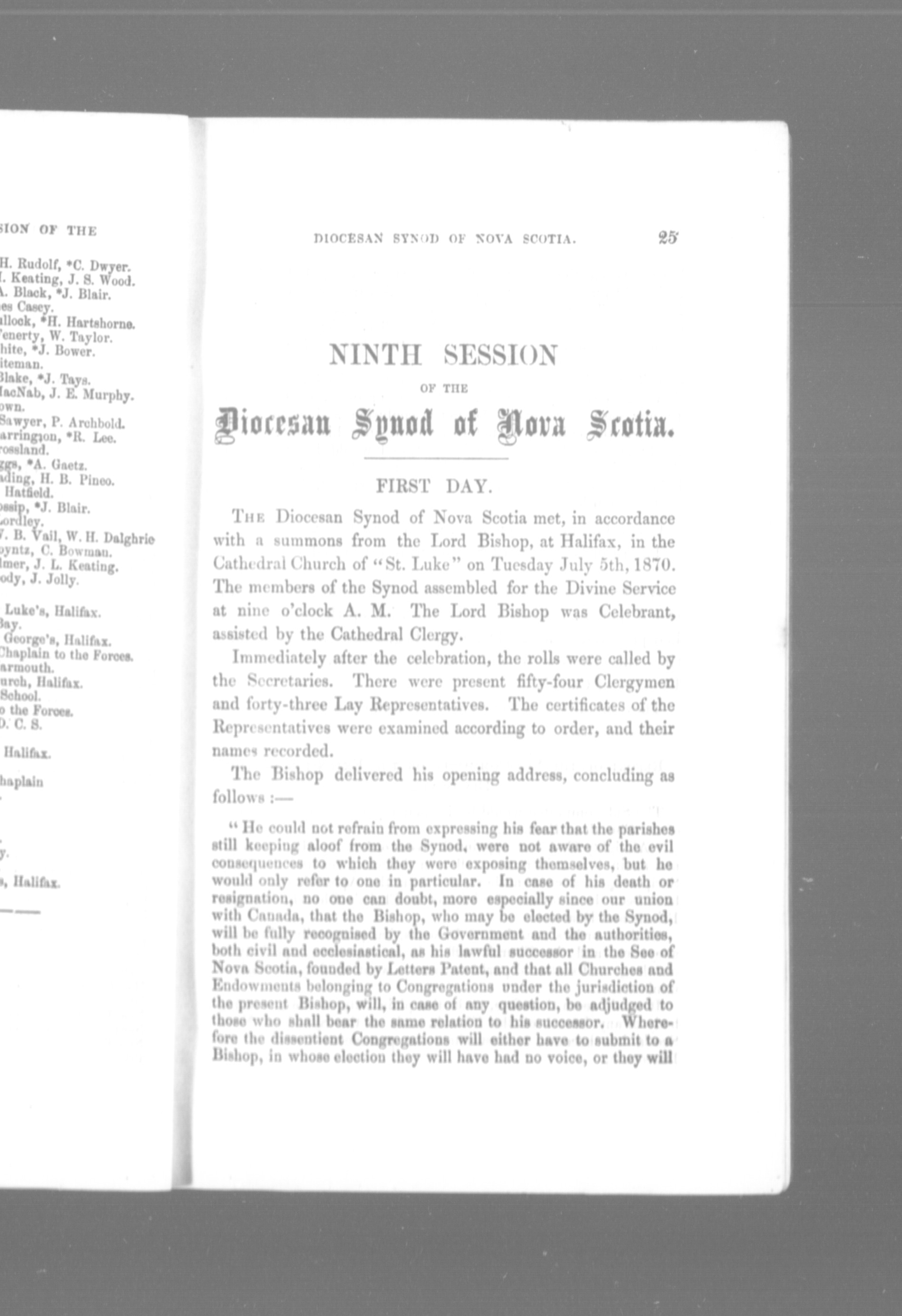 - Journal of the ninth session of the Diocesan Synod of Nova Scotia : Ninth (1870)