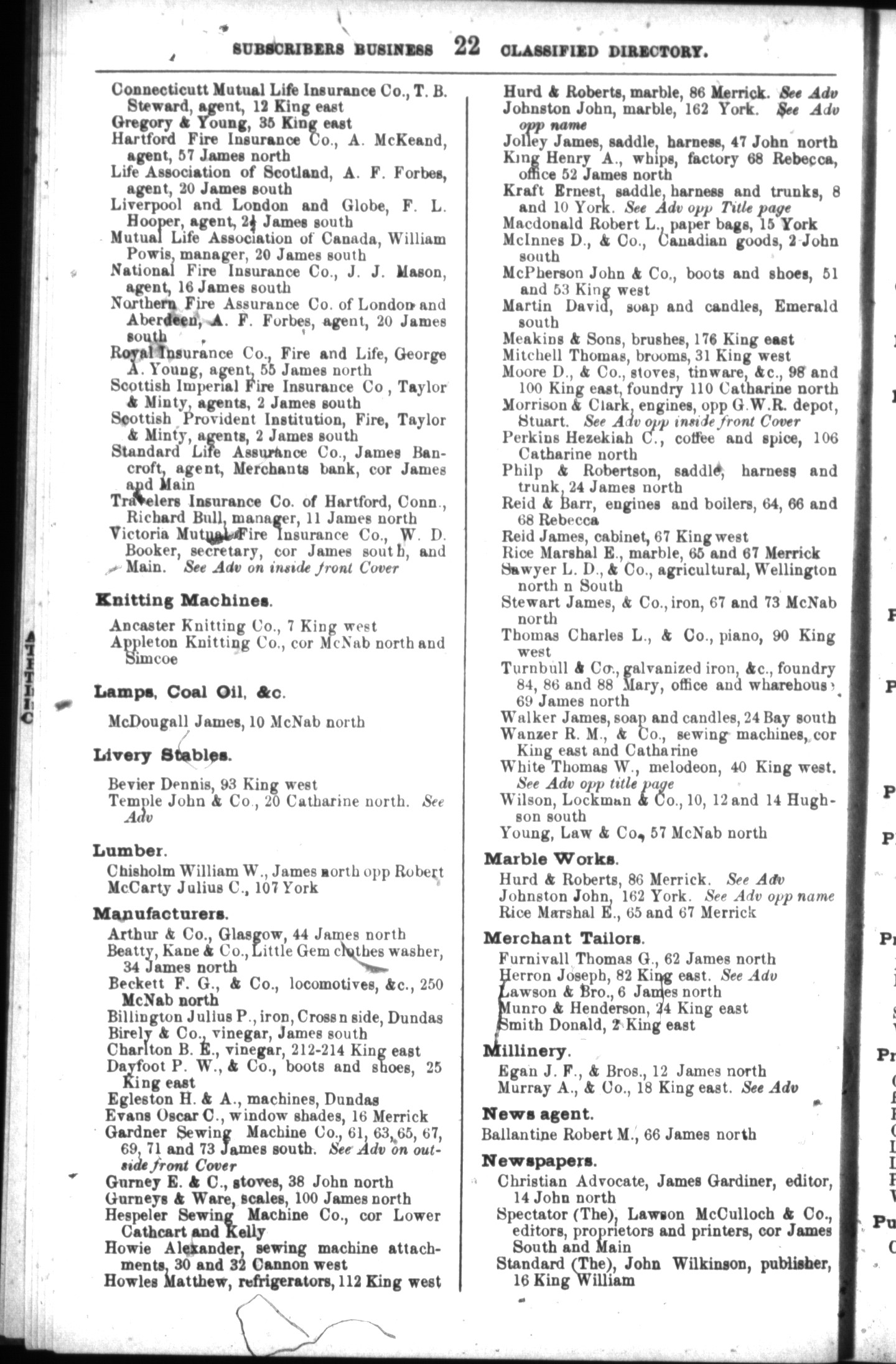 - Cherrier & Kirwin's Hamilton directory for 1872-73 : 1872/73