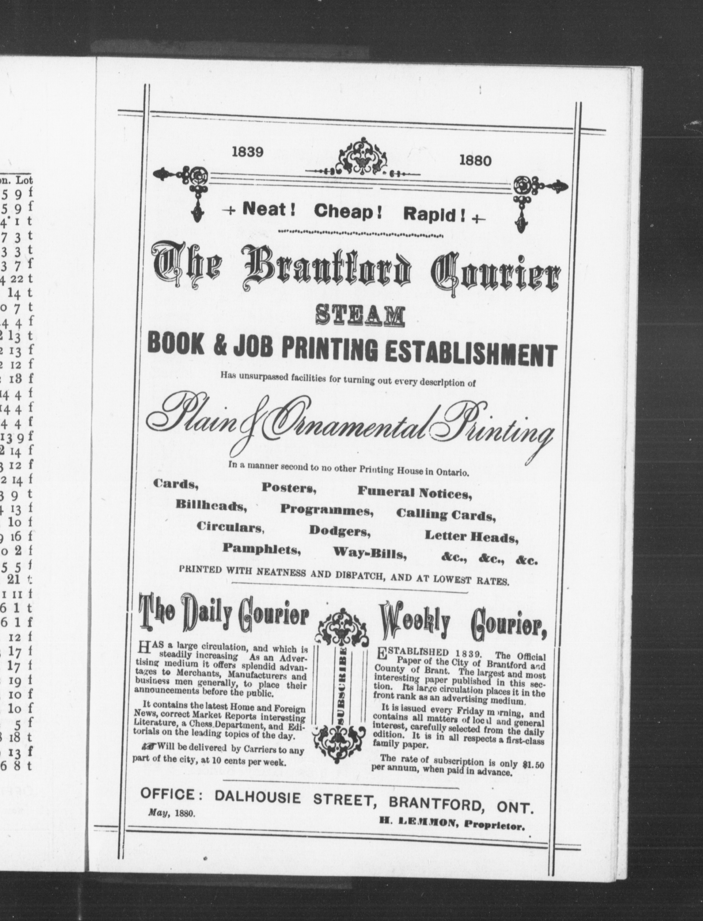 Help Brantford [Ont.] : W.H. Irwin & Co., Publishers and Compilers, 1880; 182 images with full-text search