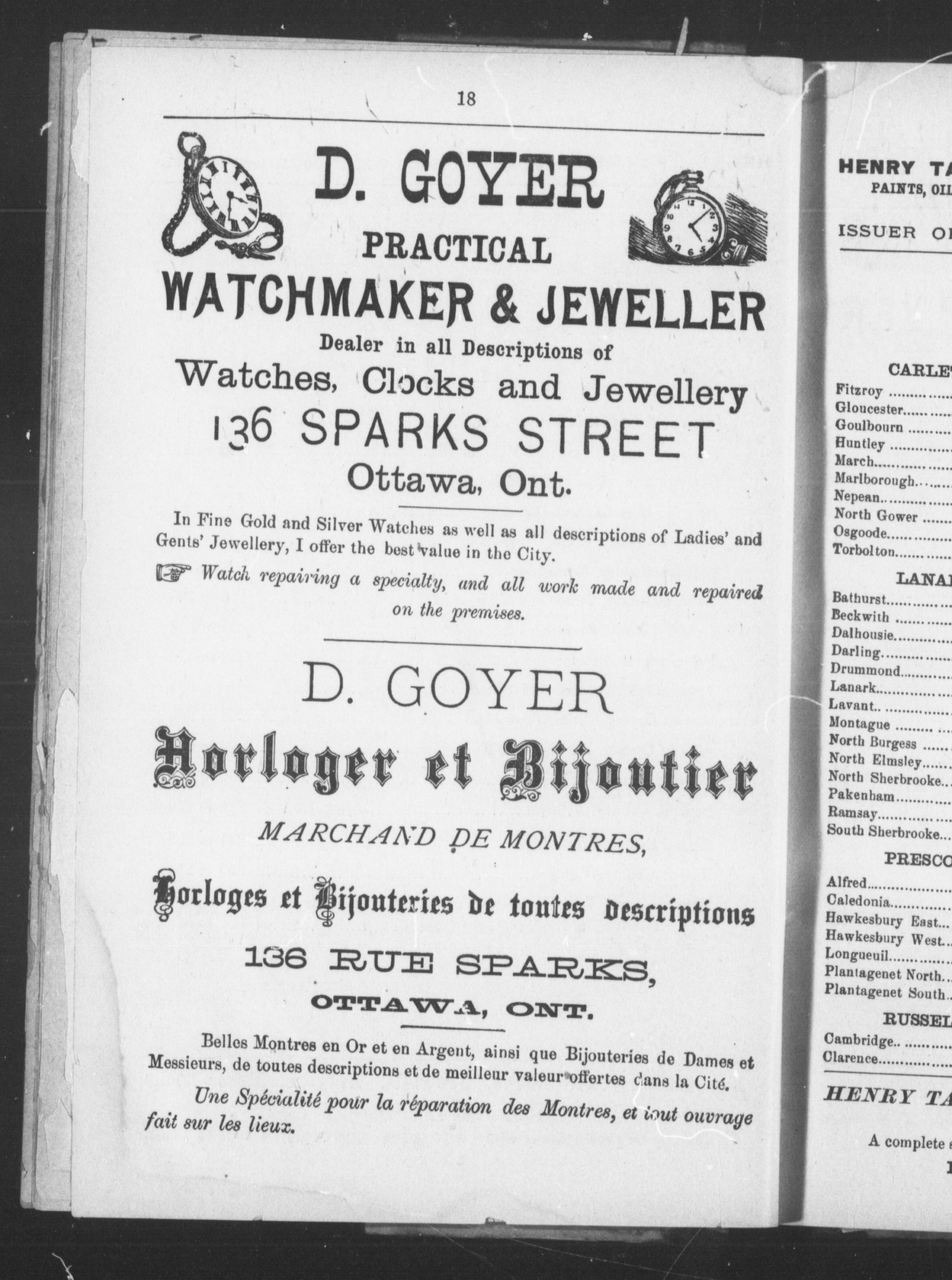 Counties of Carleton, Lanark, Prescott, Russell and Ottawa directory : 1884