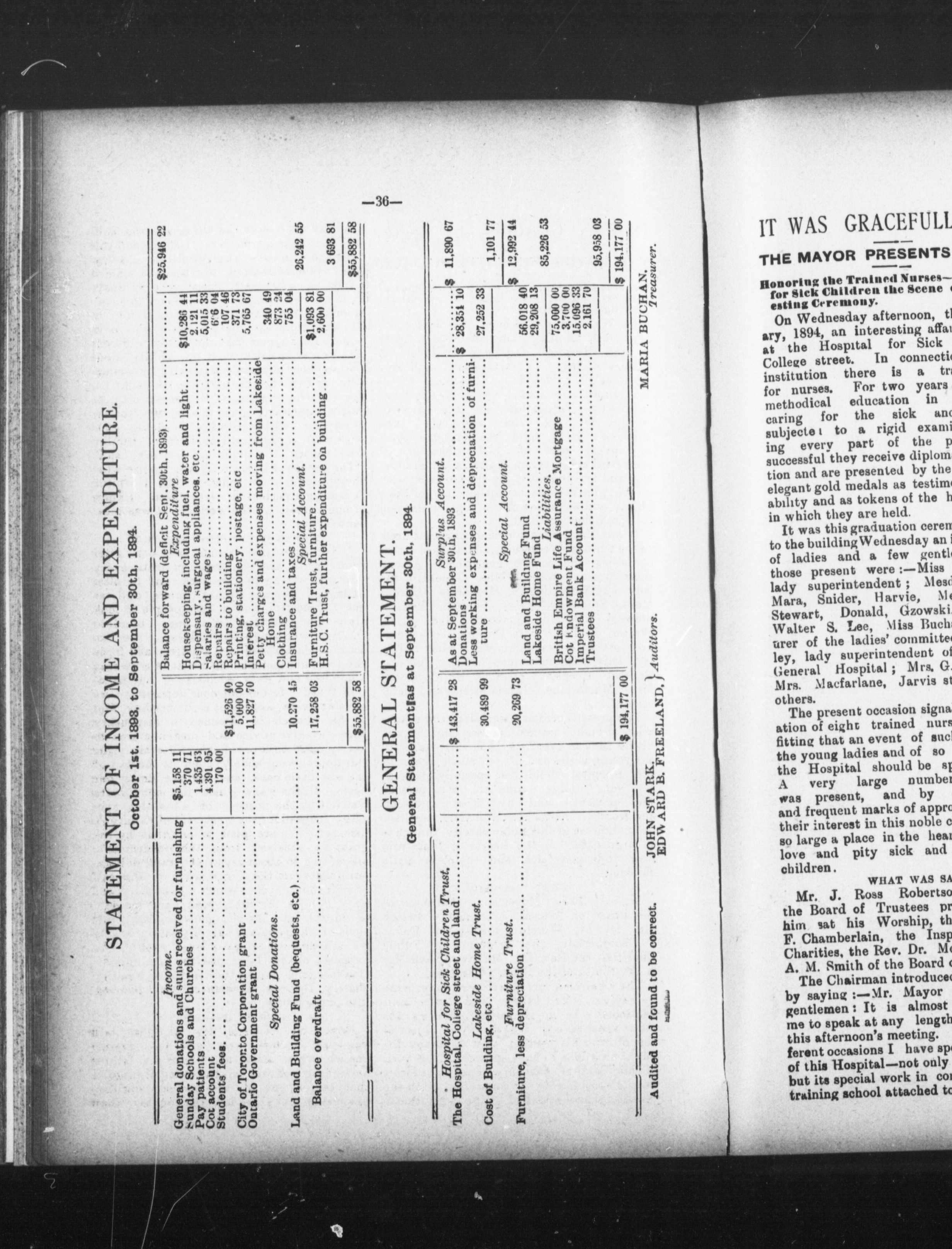 Annual report of the Hospital for Sick Children, 245 Elizabaeth St., Toronto for ... : Nineteenth annual report of the Hospital for Sick Children, College Street, Toronto, and the Lakeside Home for Little Children ... for year ending 30th September 1894 : Nineteenth (1893/94)