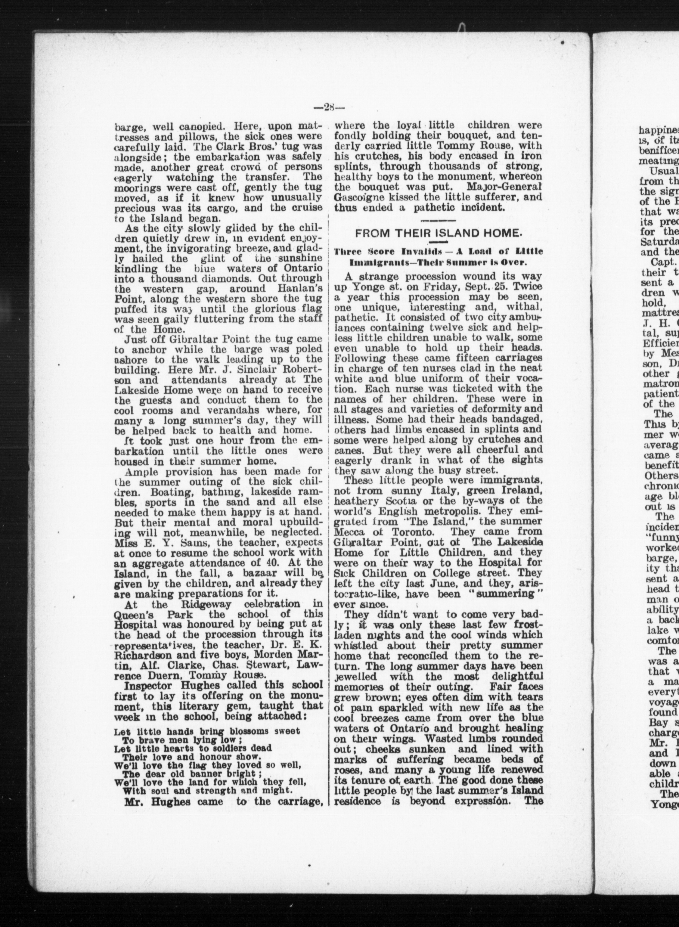 - Twenty-first annual report of the Hospital for Sick Children, College Street, Toronto, and the Lakeside Home for Little Children ... for the year ending Sept. 30, 1896 : Twenty-first (1895/96)