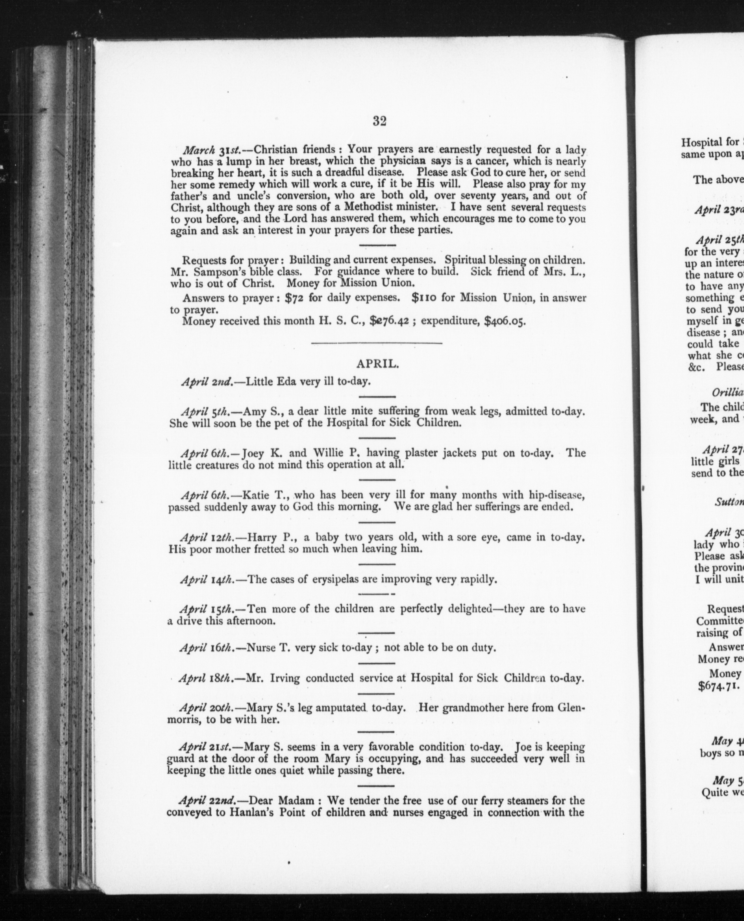 Aide [Toronto] : [Hospital for Sick Children], 1887; 39 images avec recherche en texte intégral
