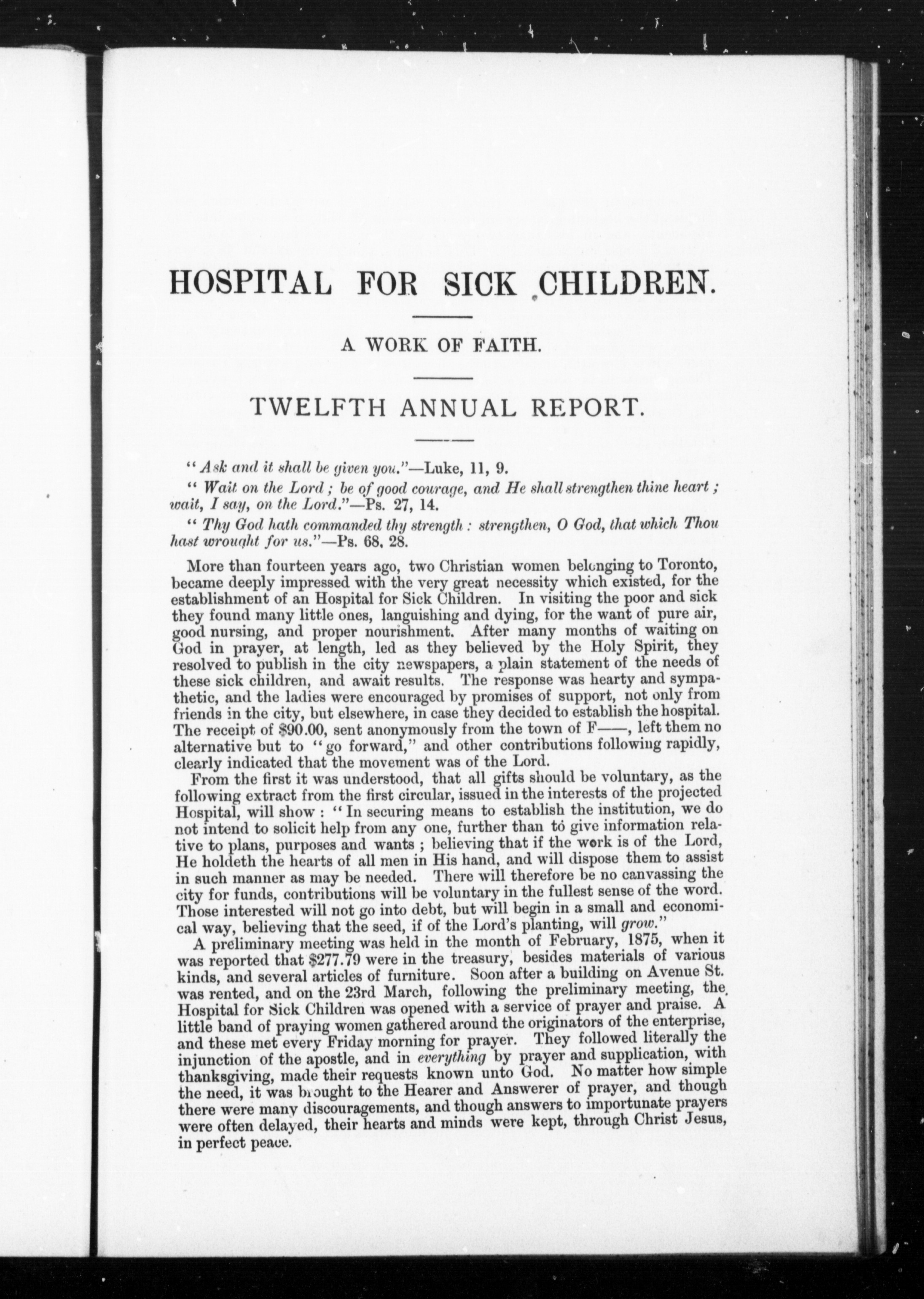 - Eleventh annual report of the Hospital for Sick Children, 90 Jarvis Street, Toronto, for 1887 : Twelfth (1887)