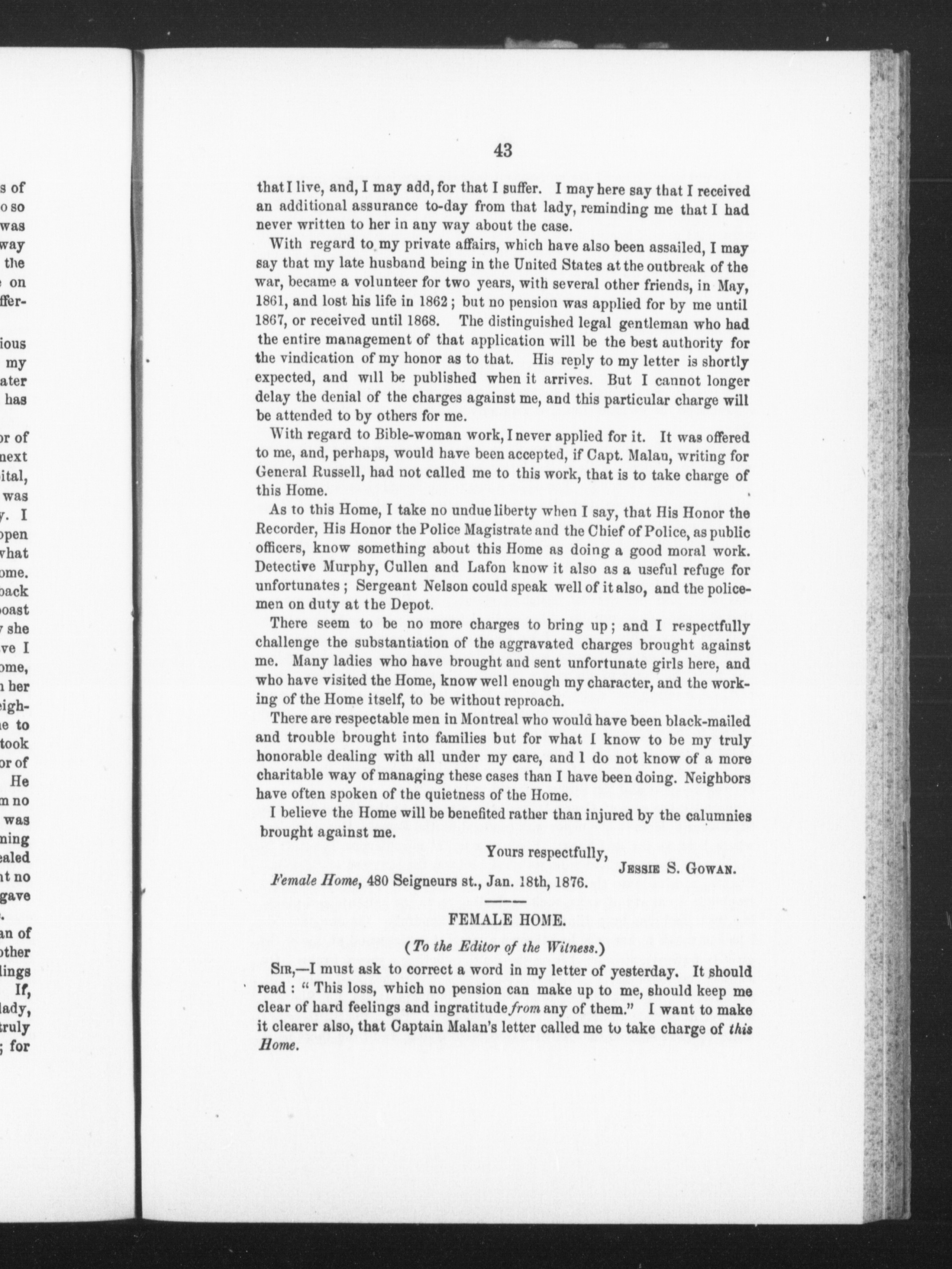 [Montréal] : [Female Home Society], [1876]; 96 images avec recherche en texte intégral