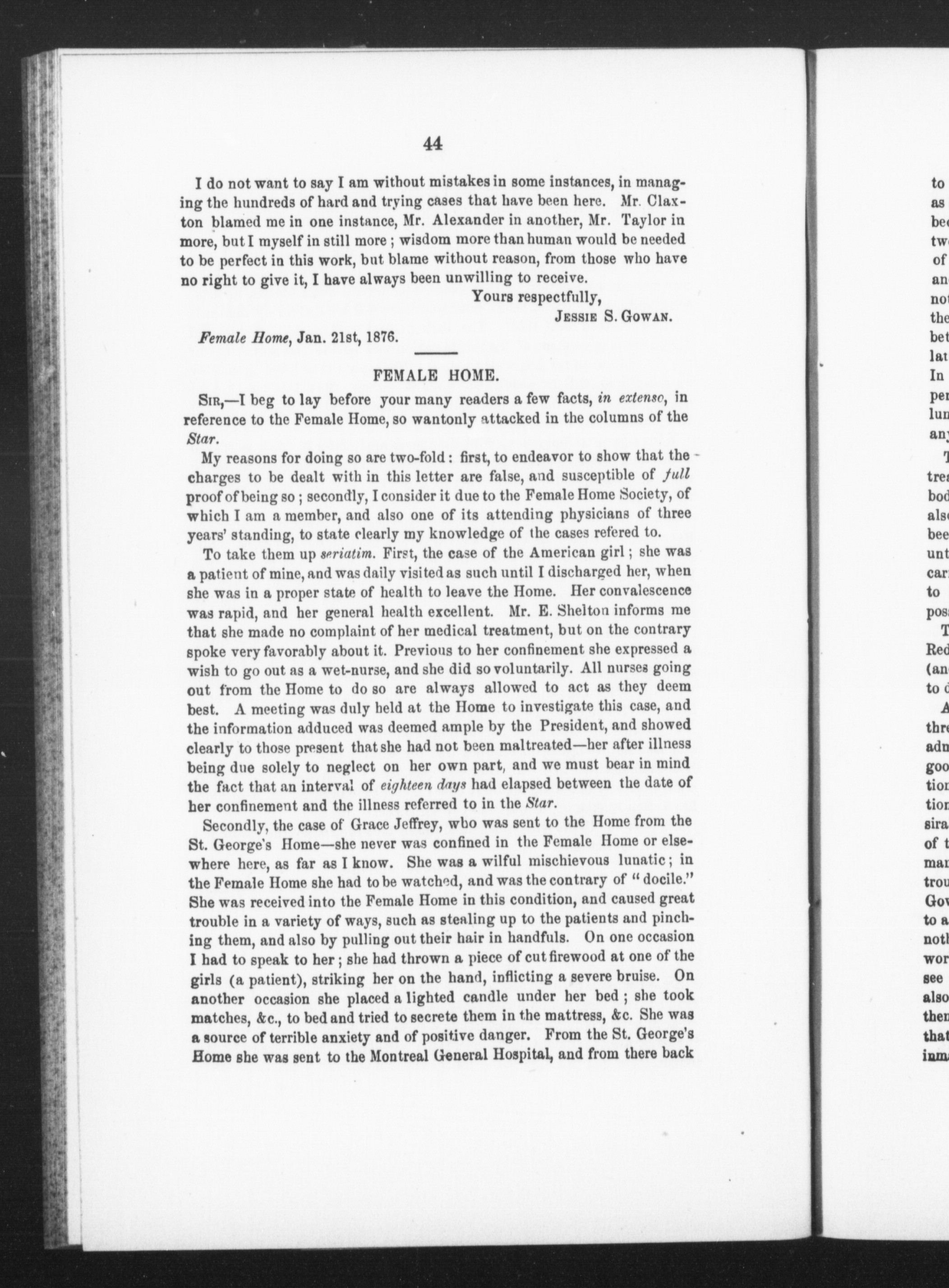 [Montréal] : [Female Home Society], [1876]; 96 images avec recherche en texte intégral