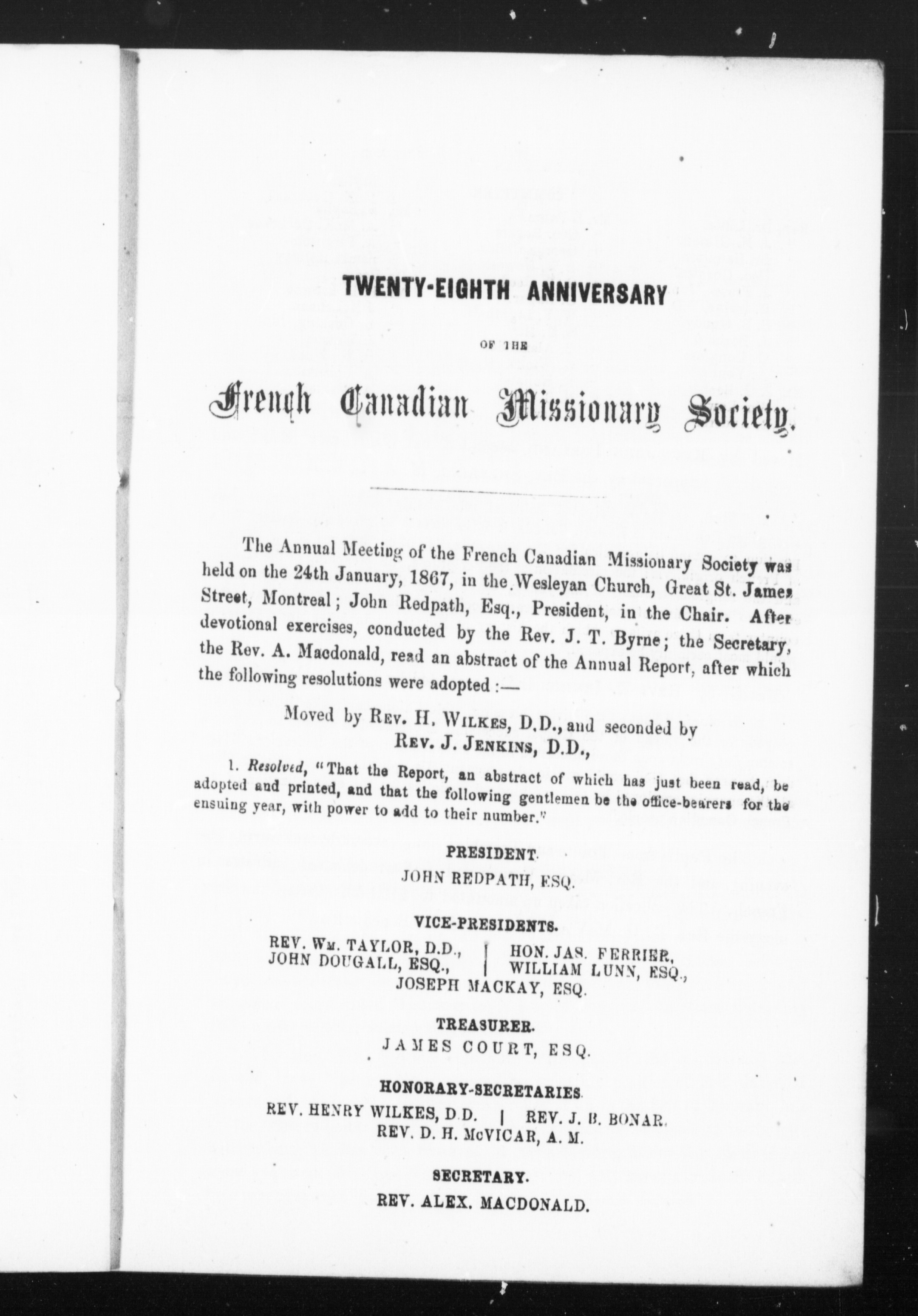 - Twenty-eighth annual report of the French Canadian Missionary Society : Twenty-eighth (1866)