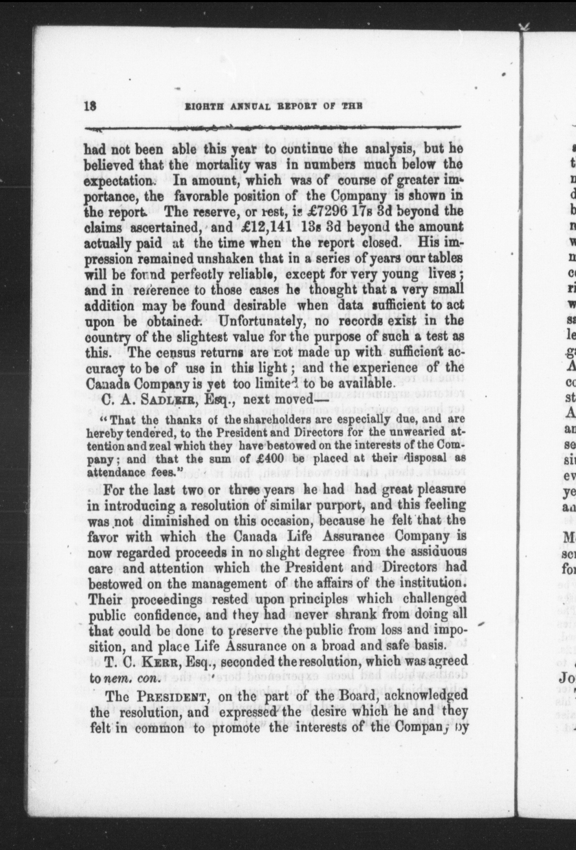 - Report and proceedings of the eighth annual general meeting of the Canada Life Assurance Company : Eighth (1854/1855)
