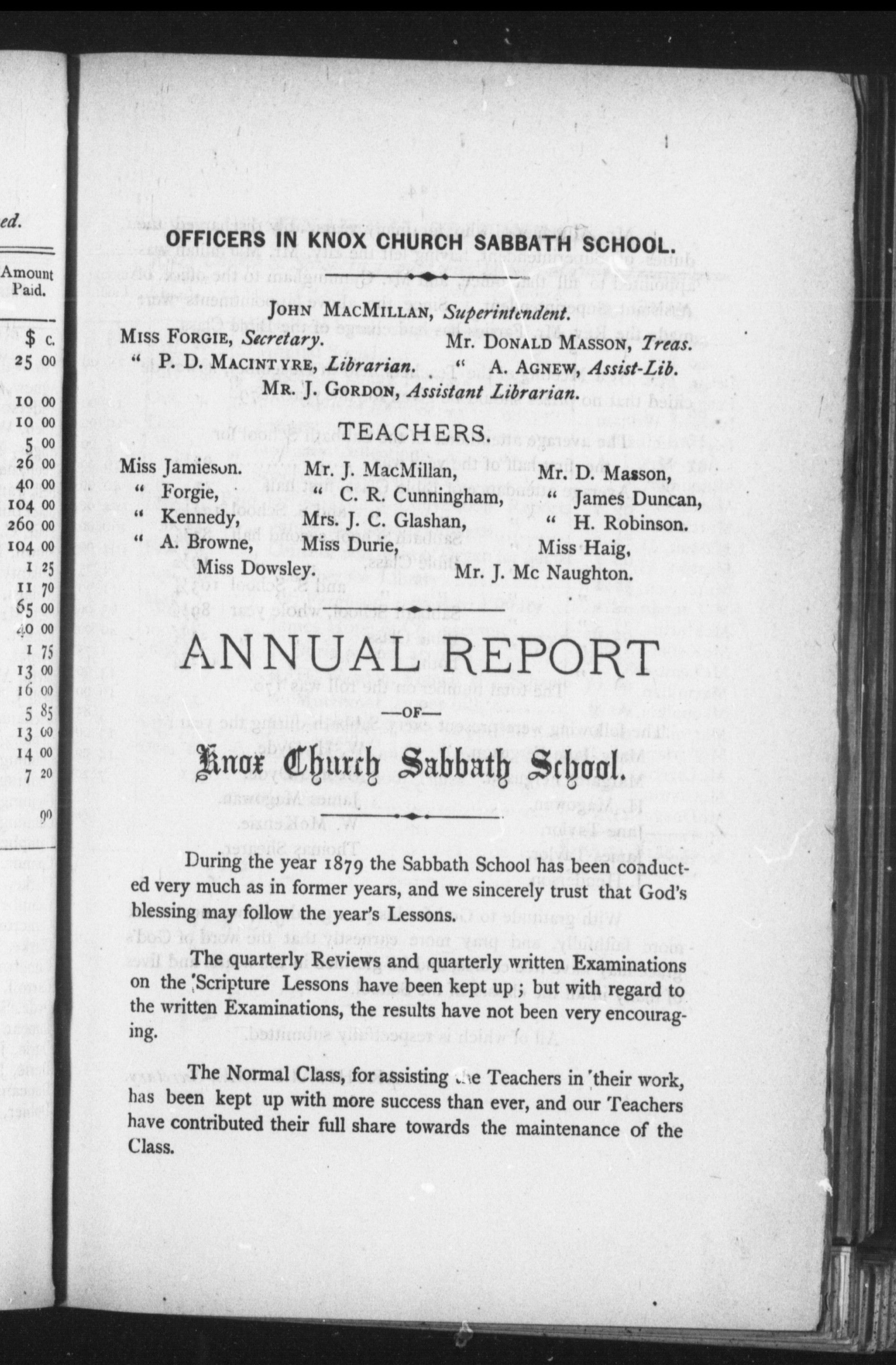 35th annual report of the Temporal Committee of Knox Church, Ottawa, for year ended 31st December, 1879 : 35th (1879)