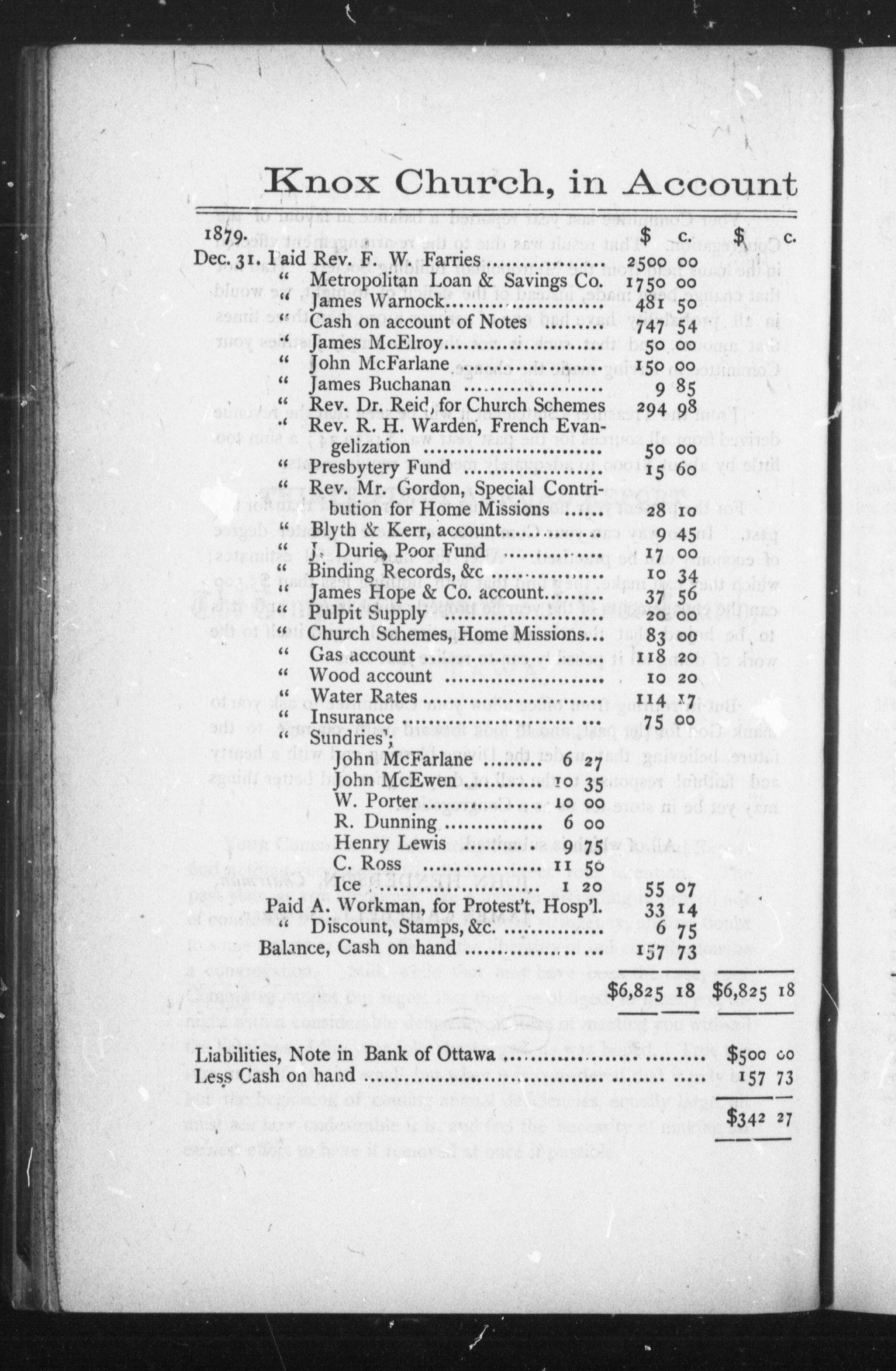 35th annual report of the Temporal Committee of Knox Church, Ottawa, for year ended 31st December, 1879 : 35th (1879)
