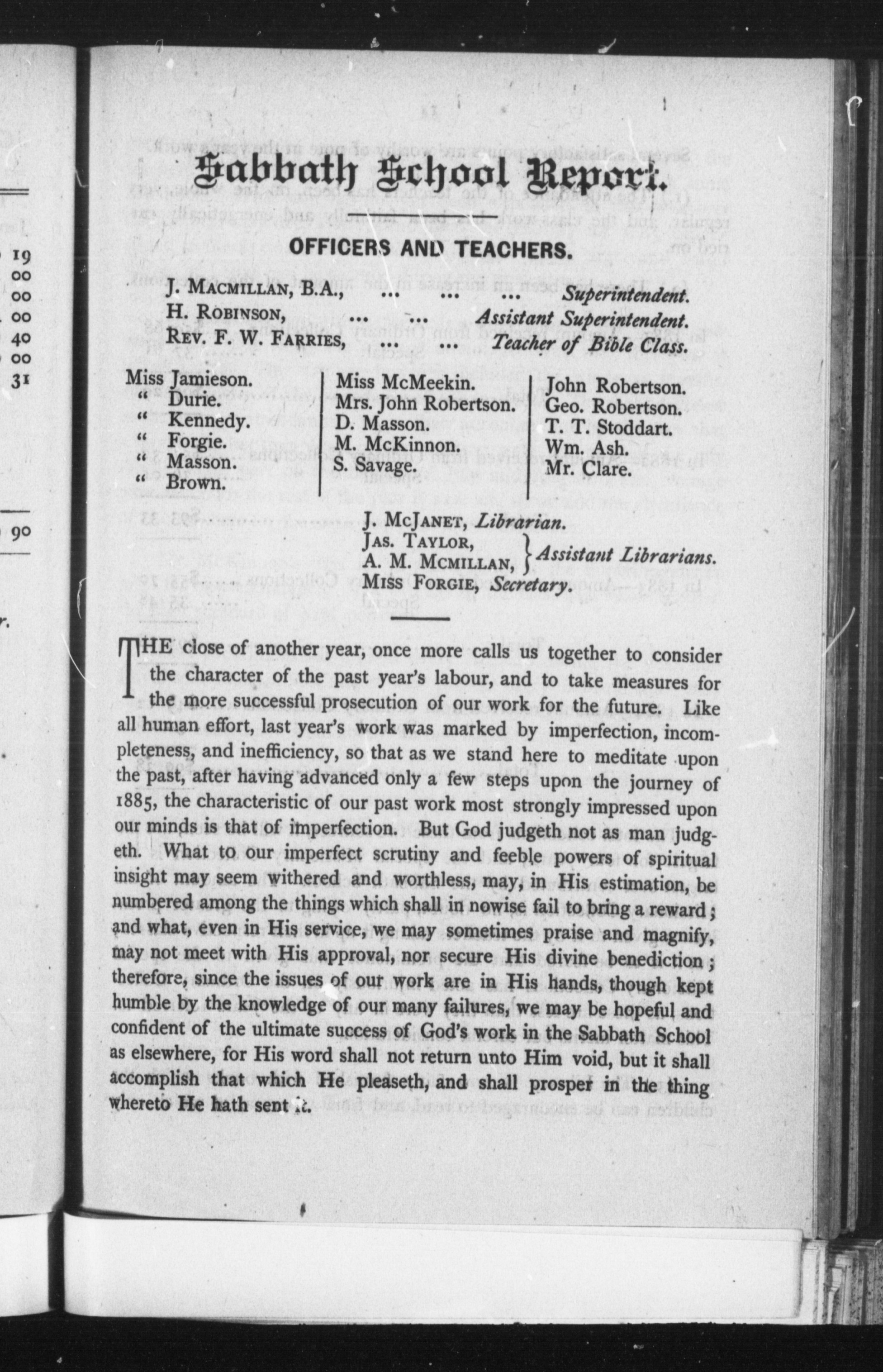 [Ottawa] : [Temporal Committee of Knox Church], 1885; 23 images with full-text search