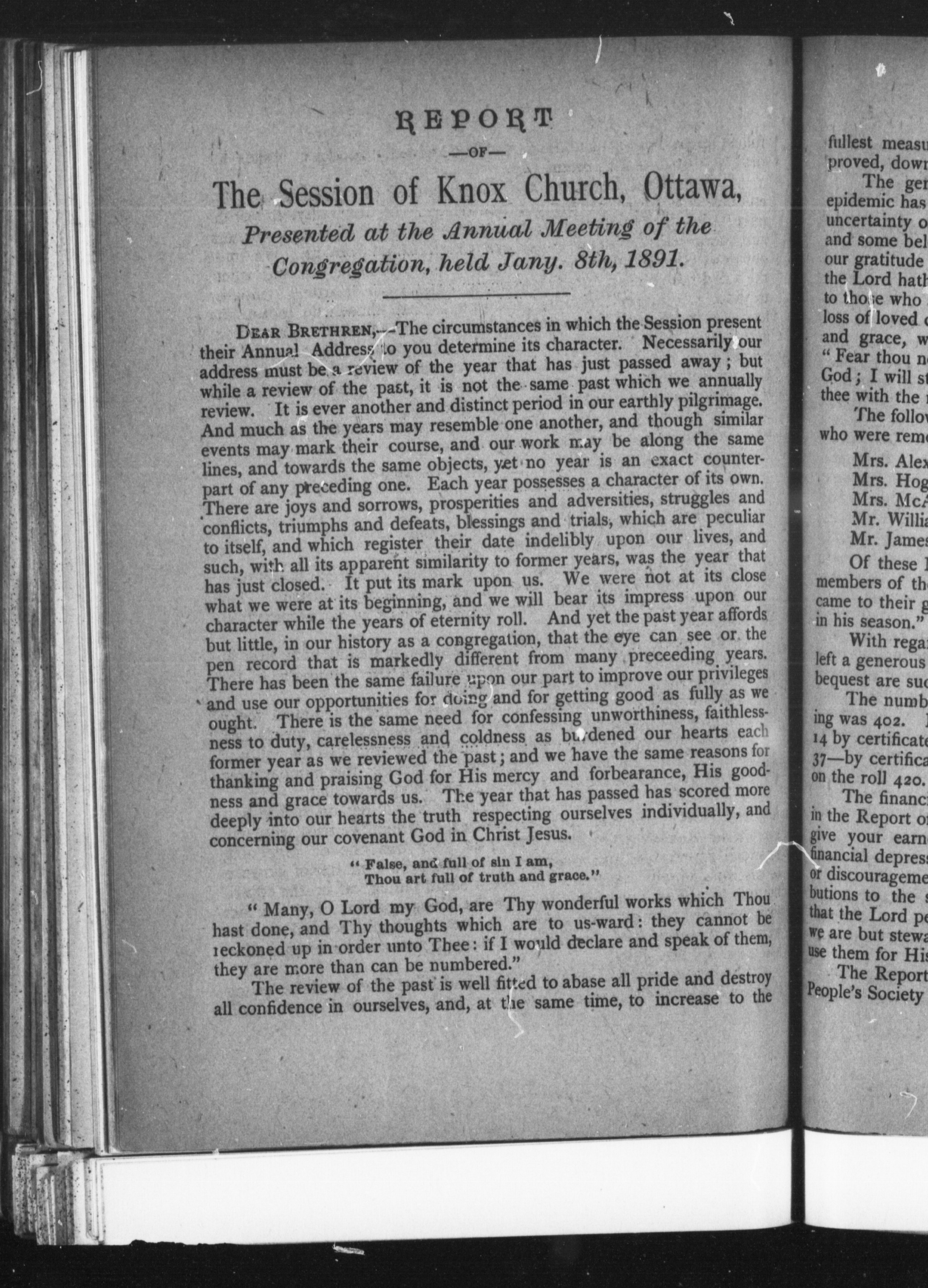 [Ottawa] : [Temporal Committee of Knox Church], 1891; 25 images with full-text search