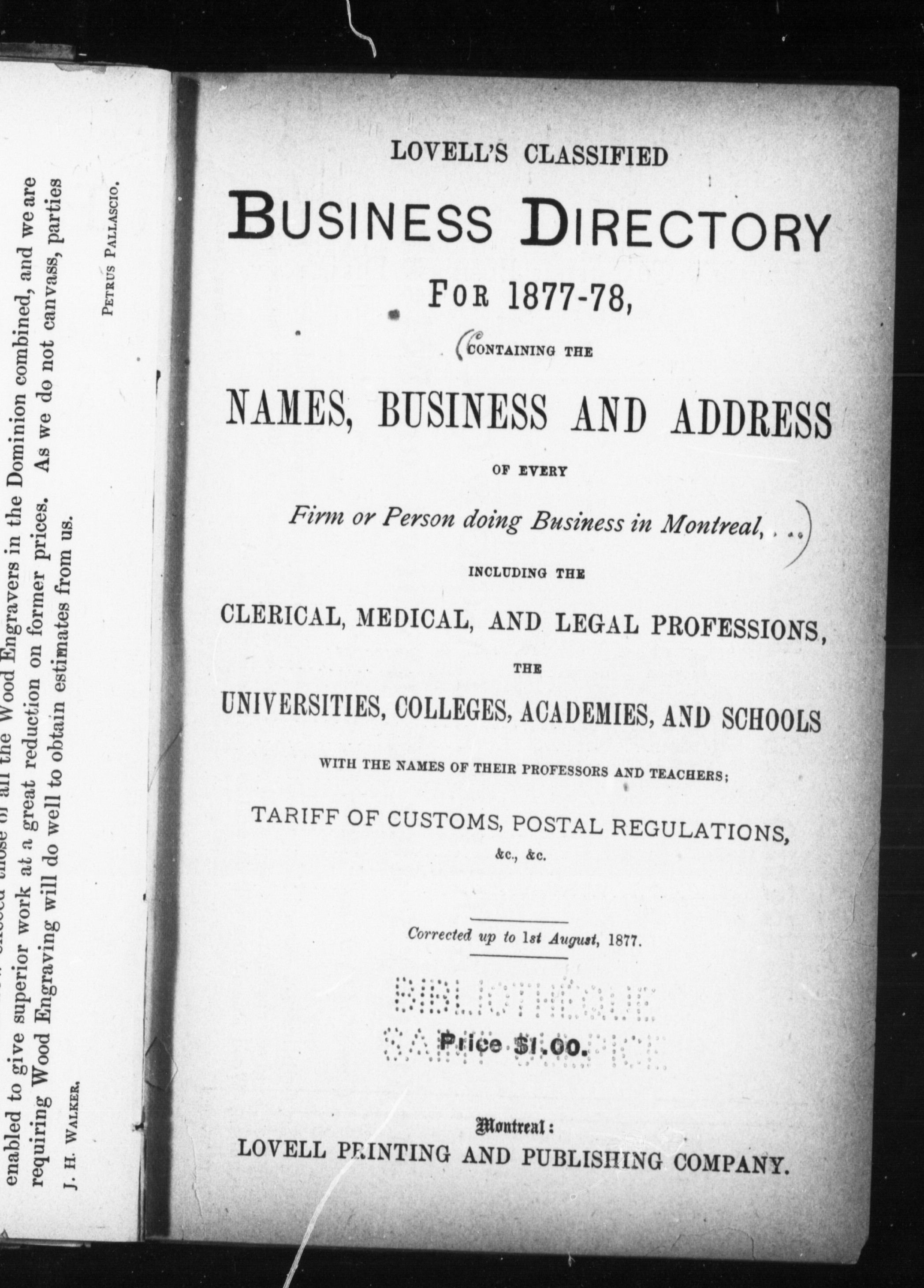 Lovell's classified business directory for 1877-78 : : containing the names, business and address of every firm or person doing business in Montreal ... : 1877/78