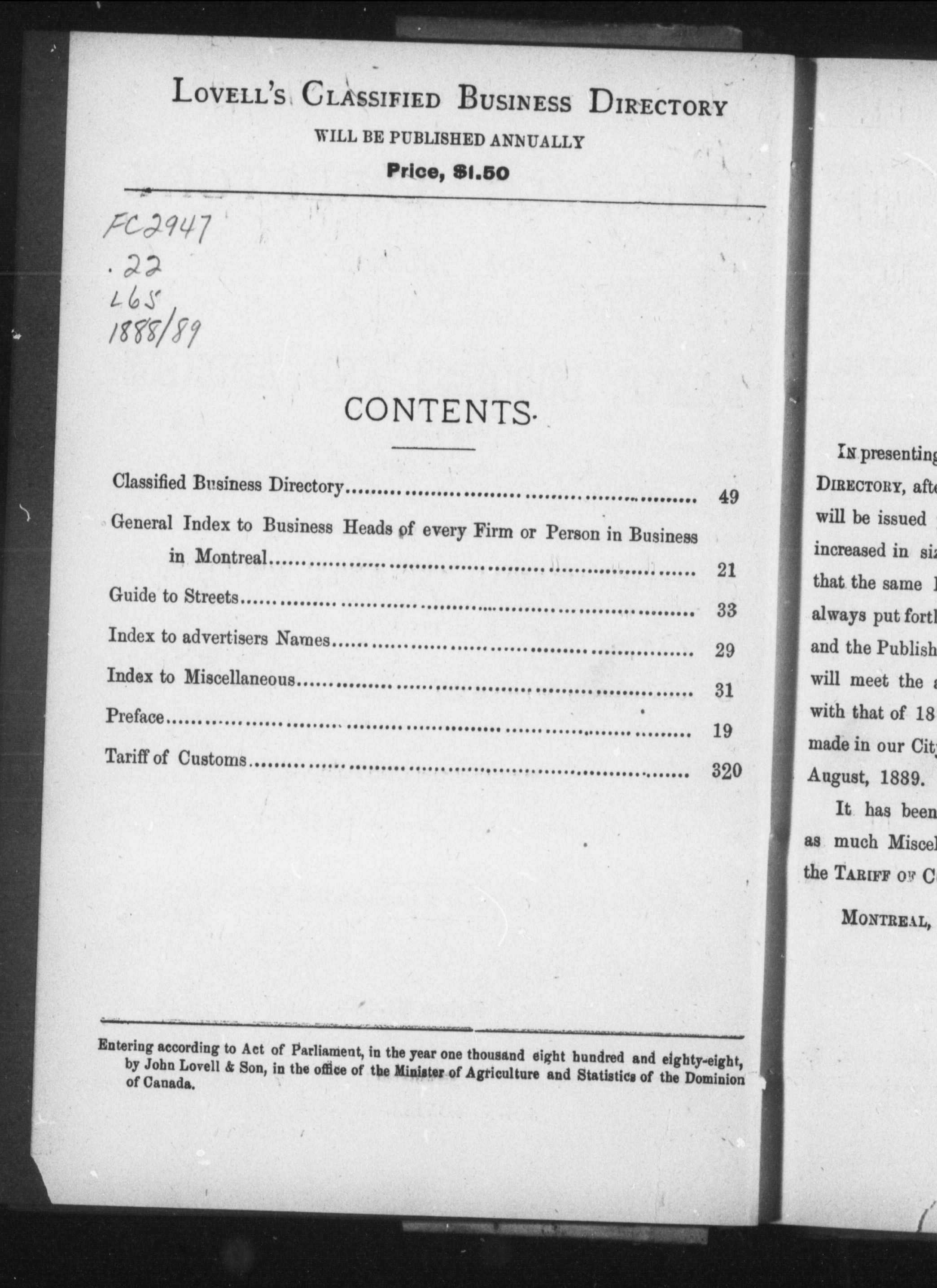 Montreal : John Lovell & Son, [1888]; 388 images, 387 avec recherche en texte intégral