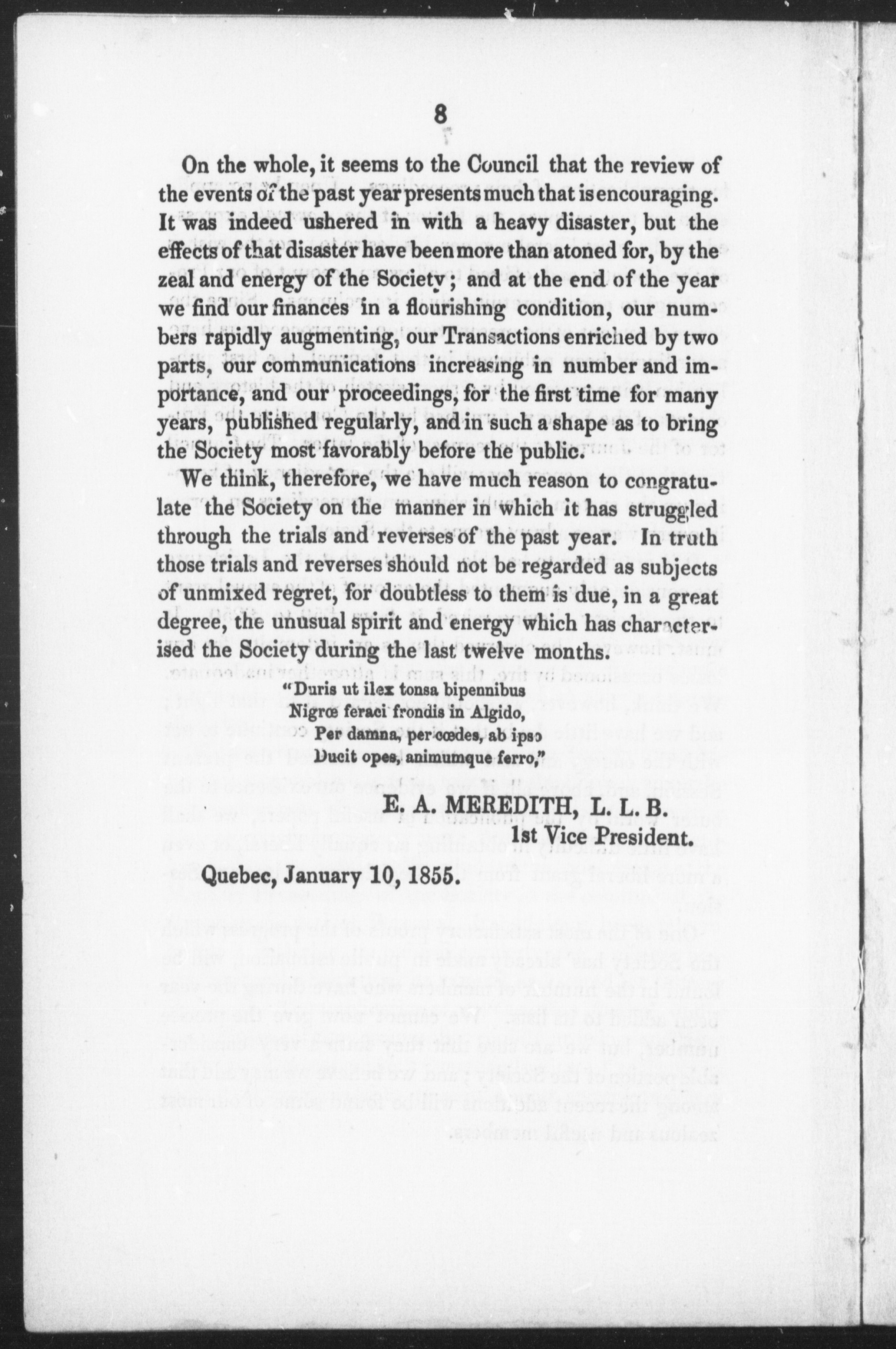 Report [of] the Council of the Literary and Historical Society : Report of the Council of the Literary and Historical Society of Quebec for 1854 : 1854