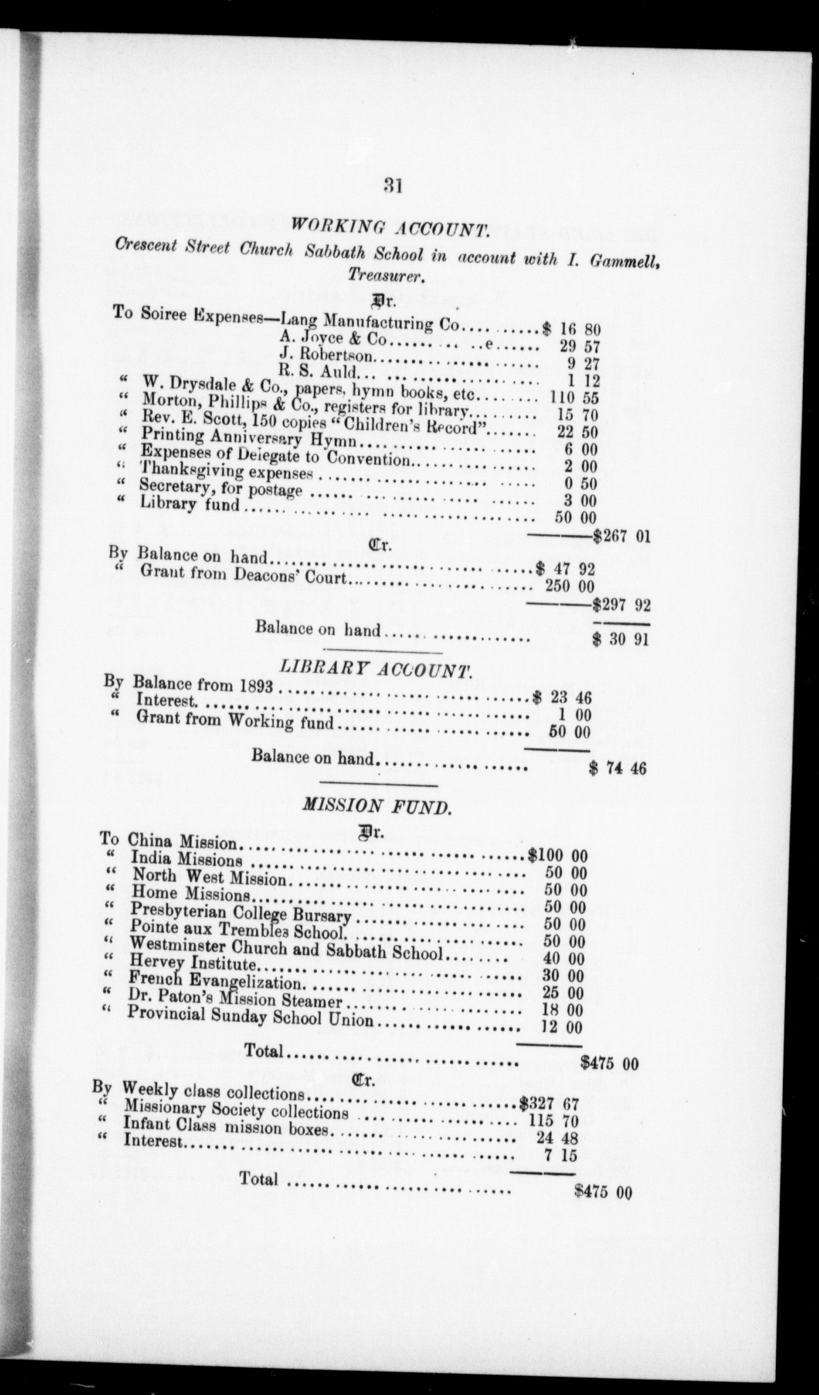 Annual reports for the year ending 31st December 1894 / Crescent Street Presbyterian Church, Montreal (Presbyterian Church in Canada) : 1894