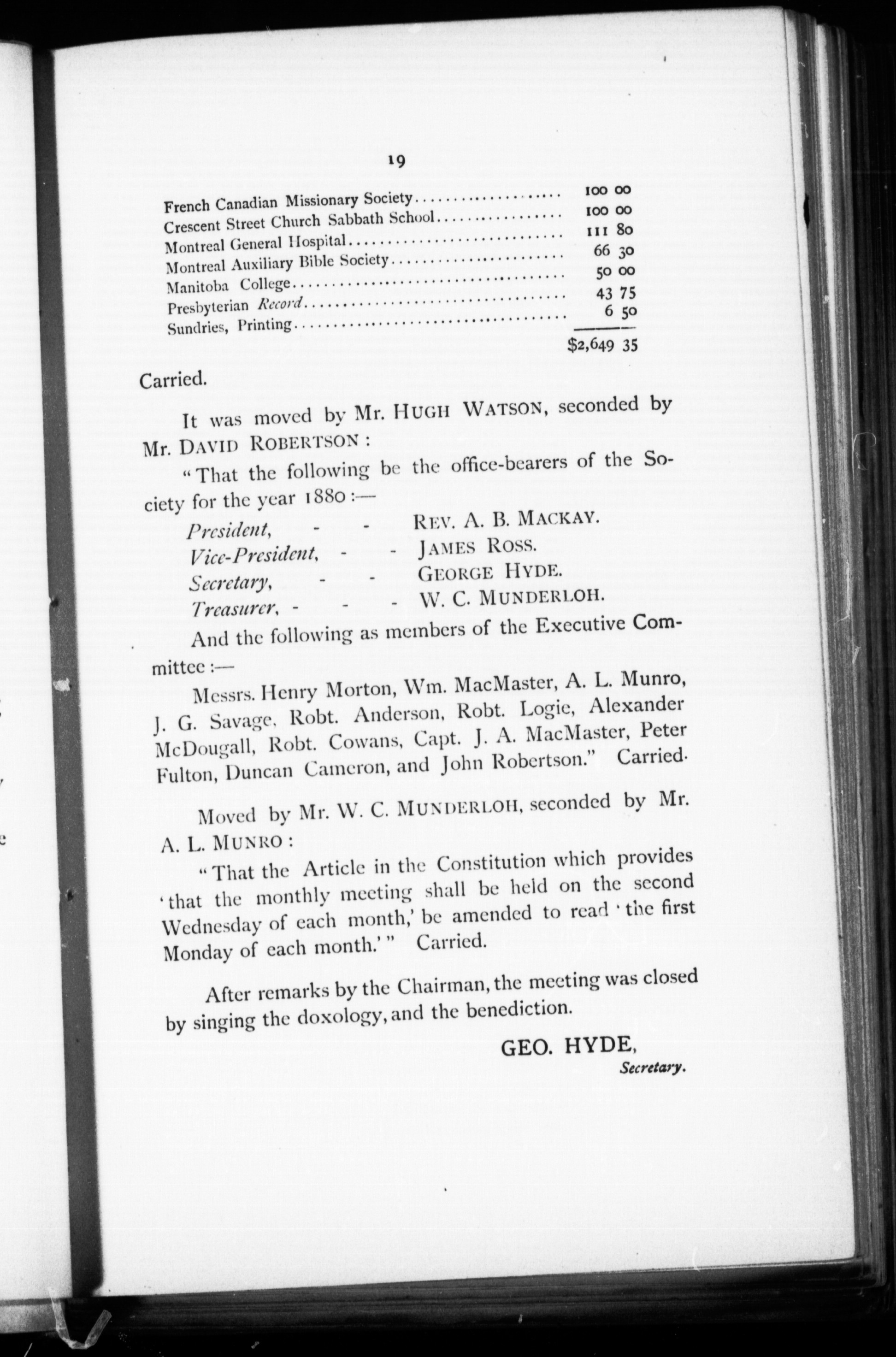- Annual reports for the year ending 31st December 1879 / Crescent Street Presbyterian Church, Montreal (Presbyterian Church in Canada) : 1879