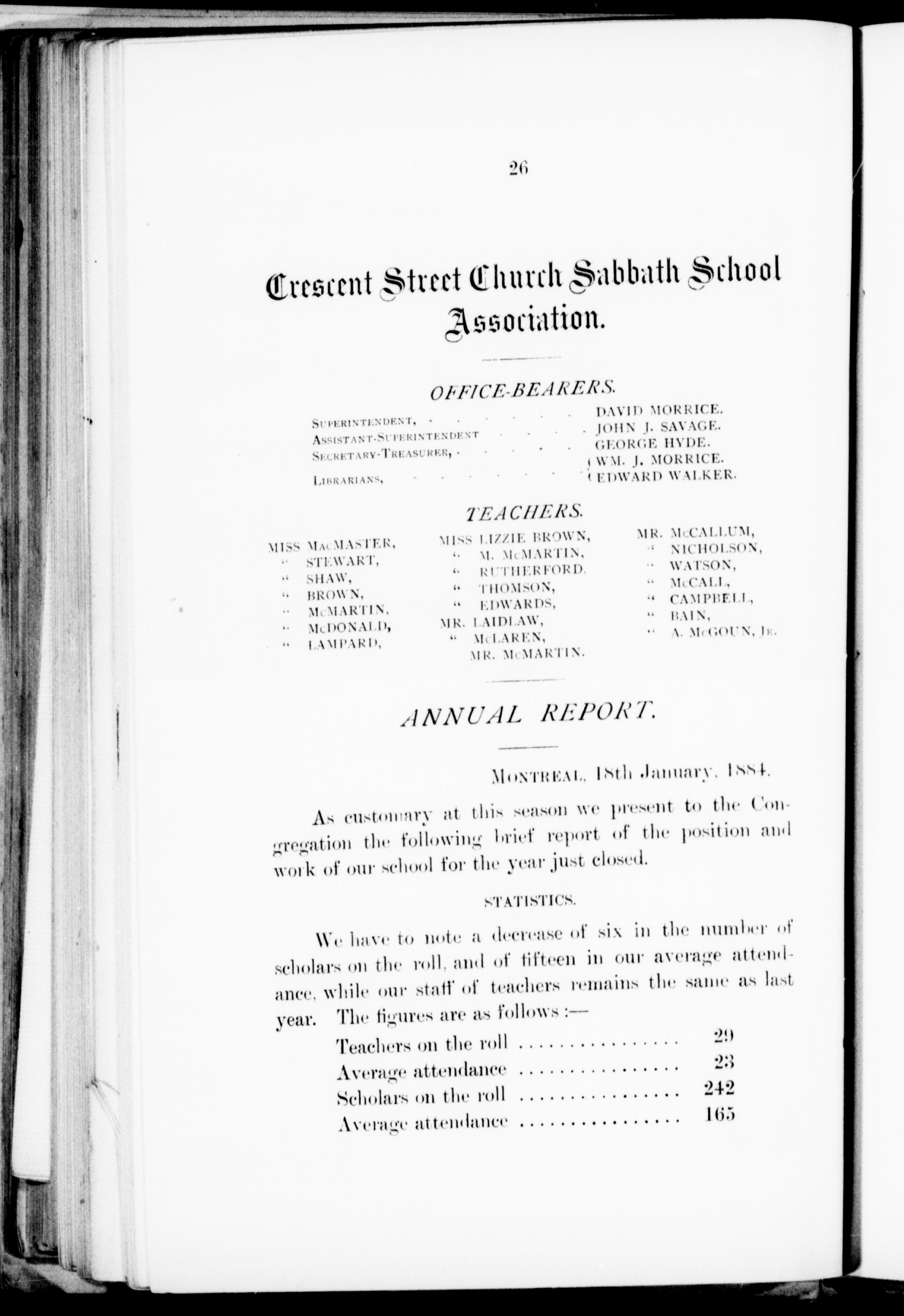 Annual reports for the Year ending 31st December ... / : Annual reports for the year ending 31st December 1883 / Crescent Street Presbyterian Church, Montreal (Presbyterian Church in Canada) : 1883