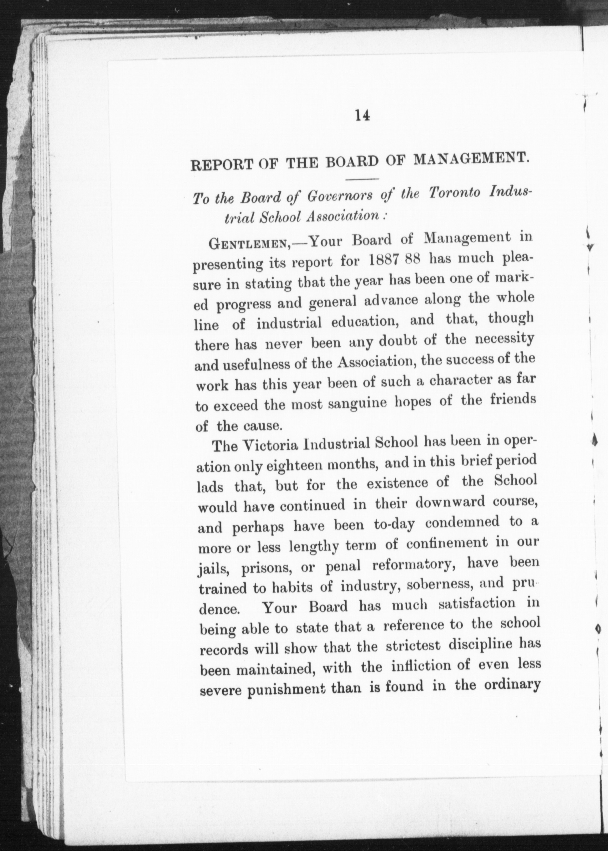 Report of the annual meeting for year 1888 of the Industrial School Association of Toronto, together with the Report of the Board of Management : 1888