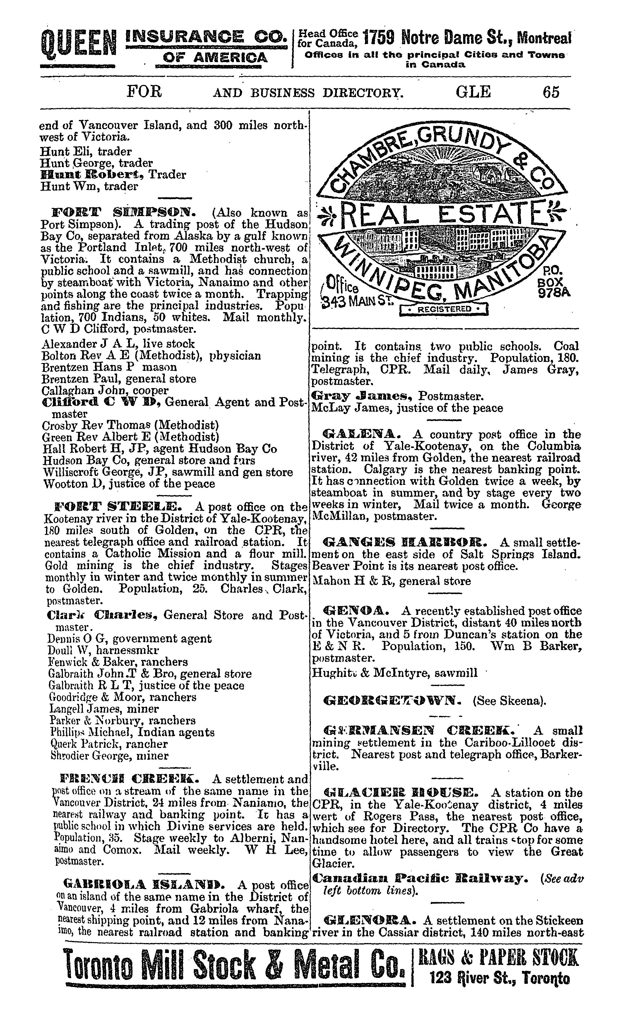 Ontario gazetteer and directory, including the provinces of British Columbia, Manitoba and the North-West Territories, also the City of Montreal, P.Q : Fifth (1892/93)